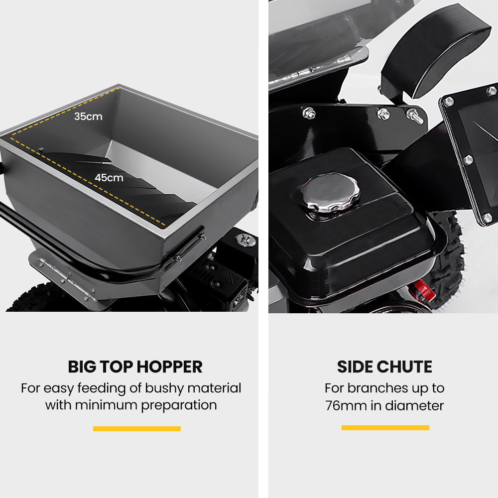 - Side Chute Capacity: 76mm / 3” diameter branches