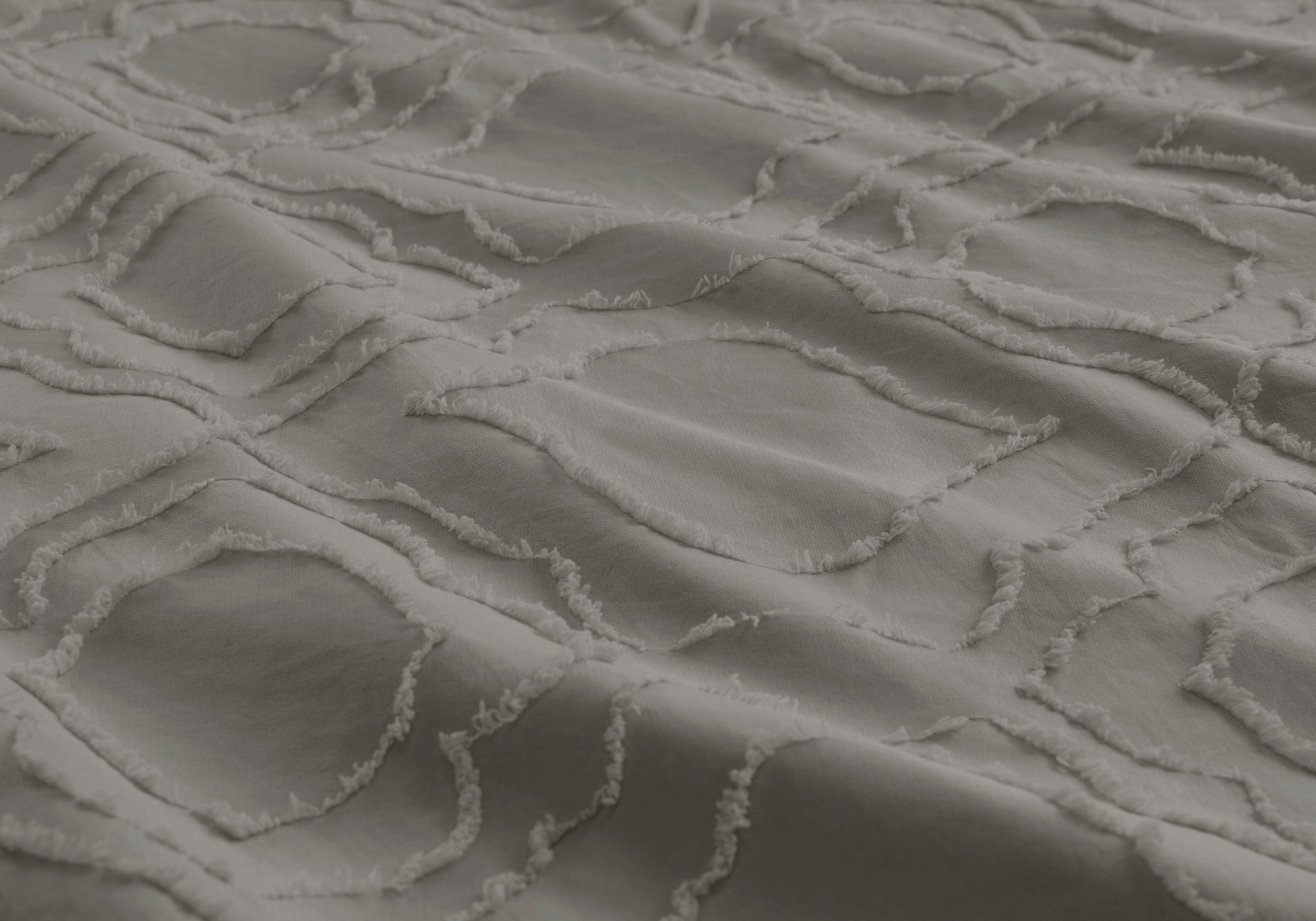 Millicent�s storm grey front displays a tufted pattern that softly gestures inspiration from floral tiles with a plain dyed reverse. This comforter set consists of 5 pieces - 1 x Comforter, 2 x Standard Pillowcases and 2 x European Pillowcases that will completely transform the bedroom aesthetics into tranquility.