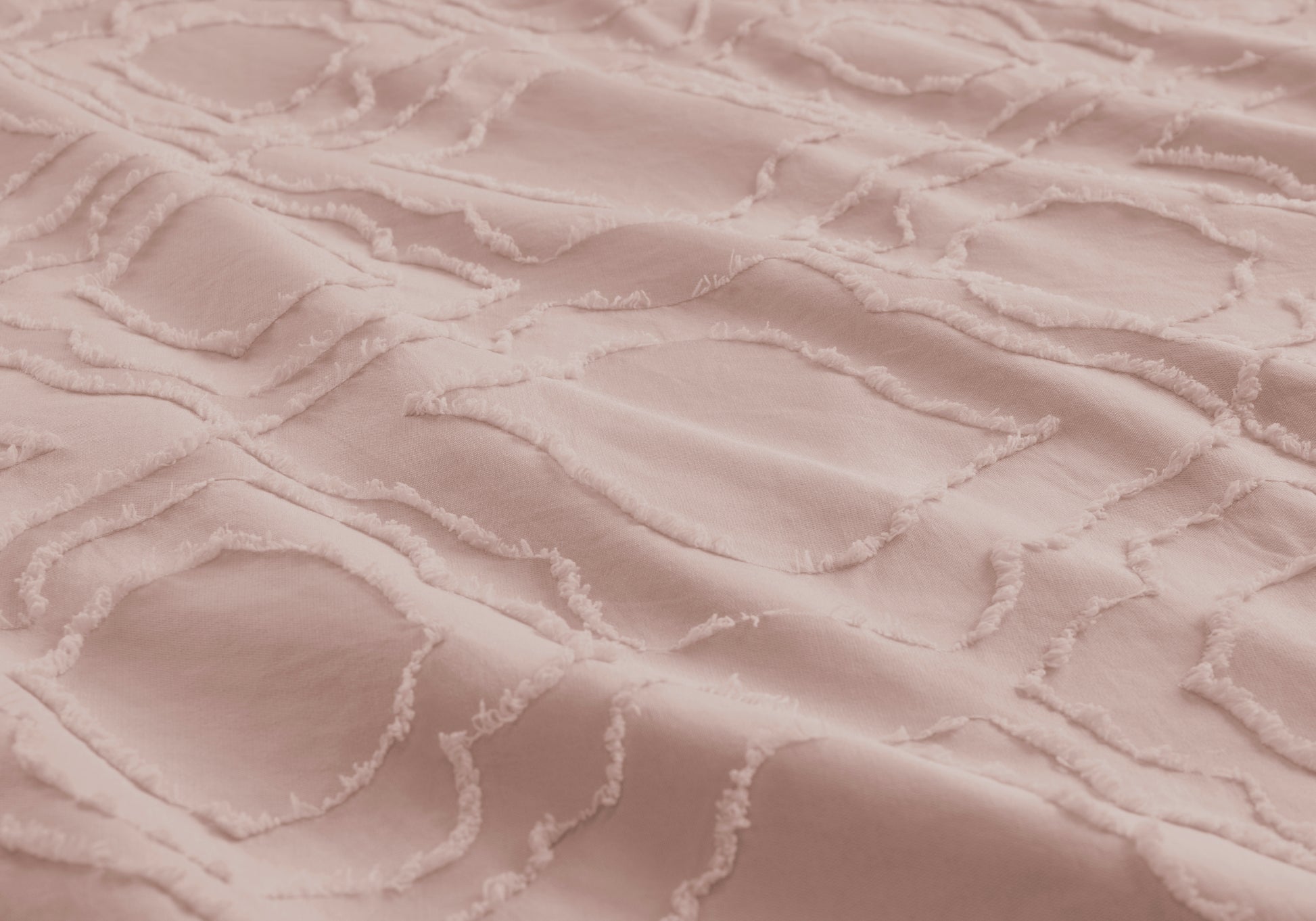 illicent�s peachy front displays a tufted pattern that softly gestures inspiration from floral tiles with a plain dyed reverse. This comforter set consists of 5 pieces - 1 x Comforter, 2 x Standard Pillowcases and 2 x European Pillowcases that will completely transform the bedroom aesthetics into tranquility.