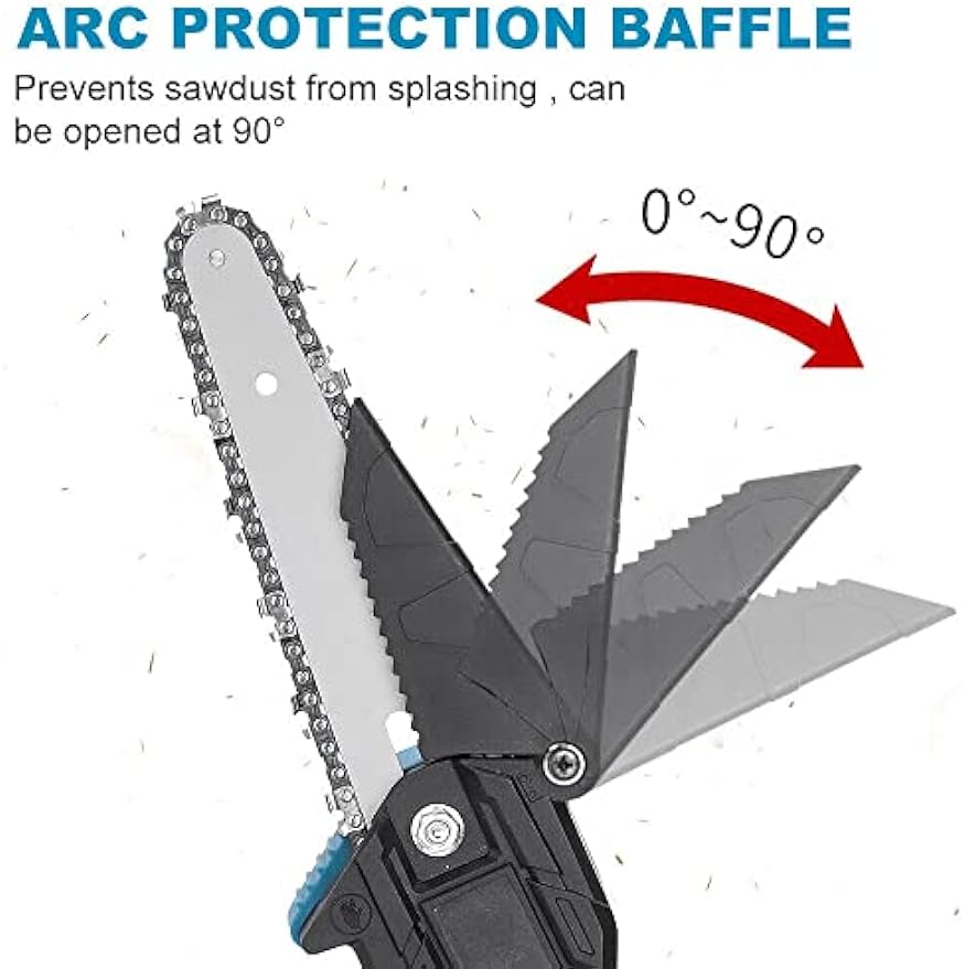 - 【Lightweight & Humanized Design】This mini chainsaw weighs 0.72kg/1.58lbs(Excluded battery) and the total length is only 39cm/15.35 in. Women can also easily control and use it, and long hours of work will not be tiring. The guide plate of this mini chain saw is resistant to high temperatures and it can quickly dissipate heat. It also resistant to falling and abrasion.