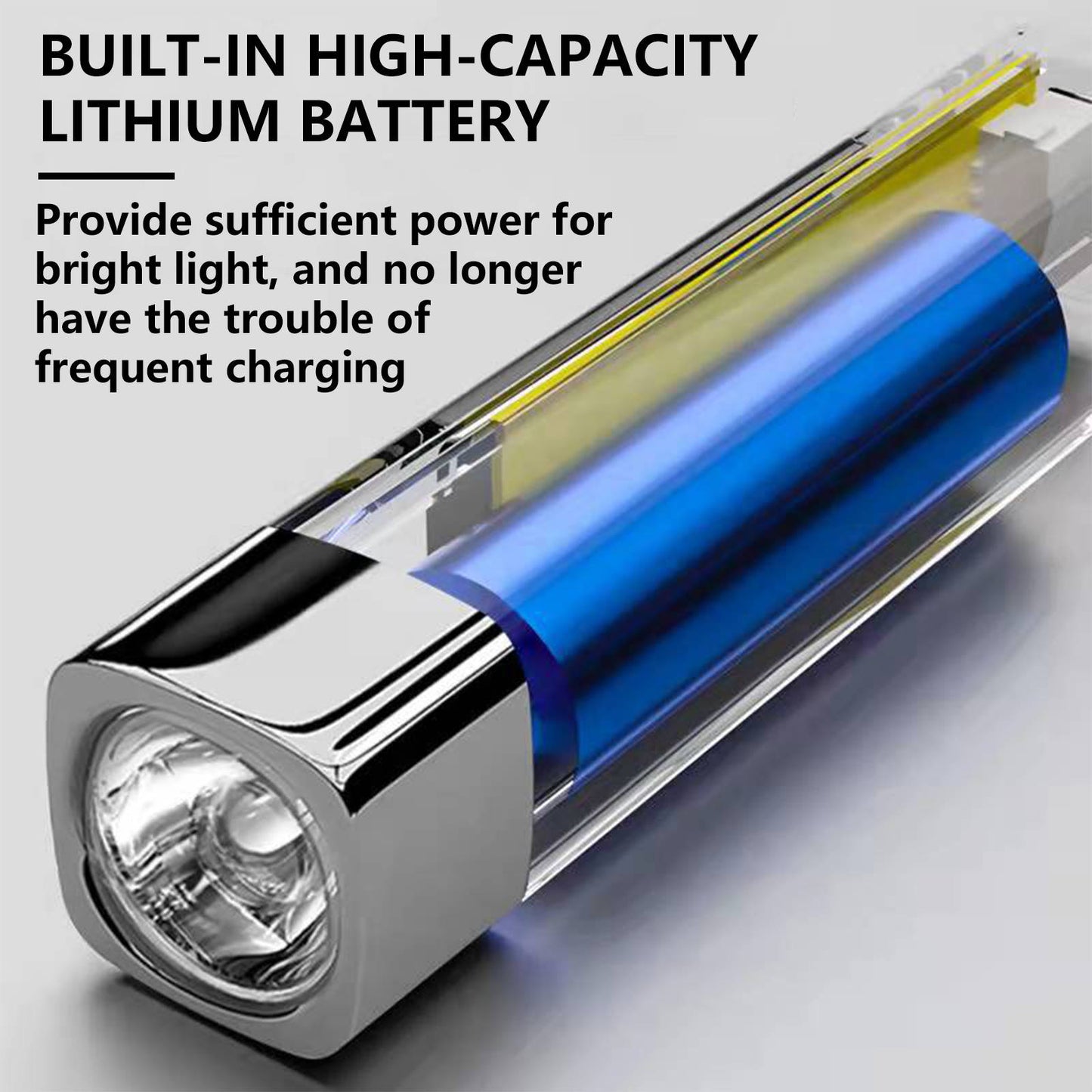 This is a high-quality LED flashlight designed for outdoor activities like camping, hiking, and cycling. It features a powerful COB and LED light source that can be dimmed to suit different needs. This torch is rechargeable via USB and is waterproof, making it an ideal choice for outdoor enthusiasts. Whether you need to light your path, set up a camping site, or simply need a reliable source of light, this LED flashlight is the perfect tool for the job