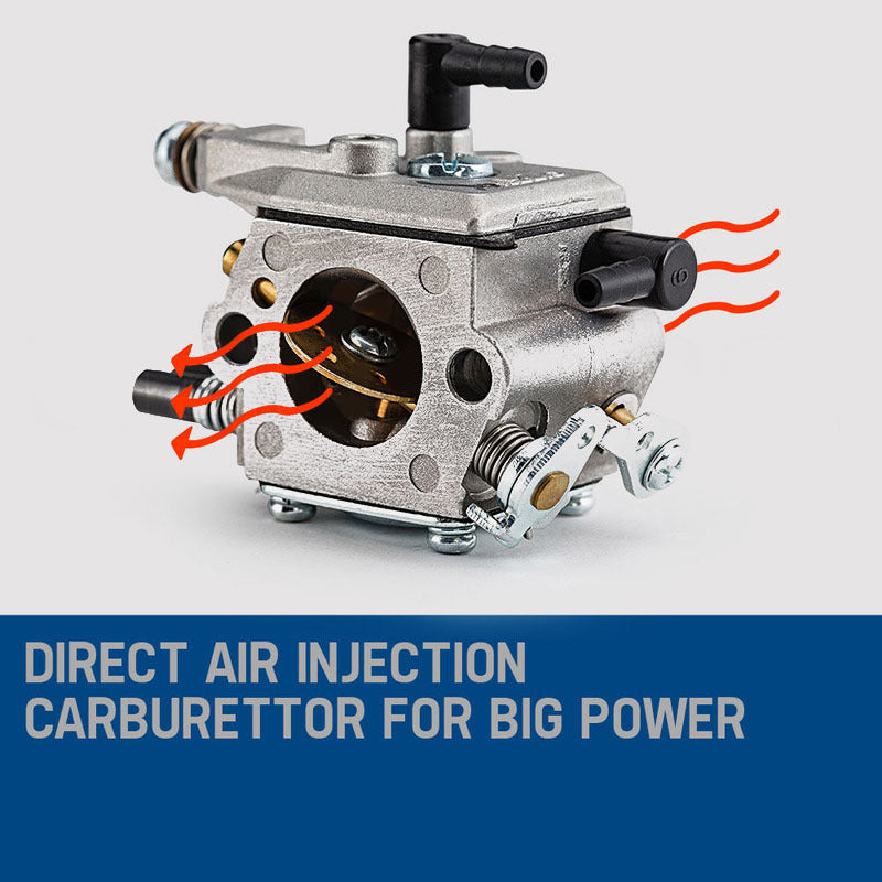 The MTM 62SX Chainsaw is the ultimate wood cutting companion. Whether you're pruning hedges, cutting firewood or taking down whole trees. This fast revving, perfectly balanced unit packs serious punch with its patented air injection carburettor and intake system delivering more grunt.