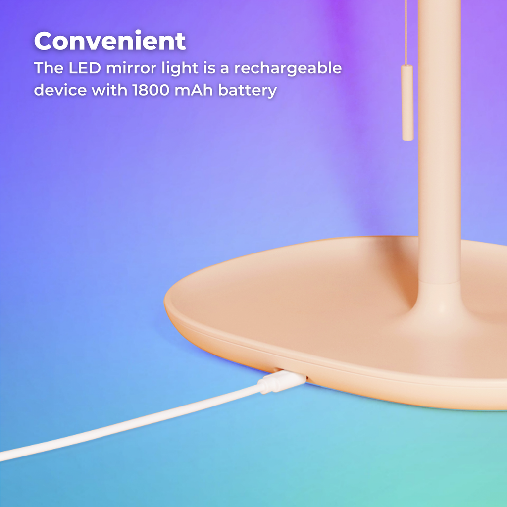- The mirror lamp is able to adjust the lighting brightness (dim or bright) by touching the switch button or pull-down rope