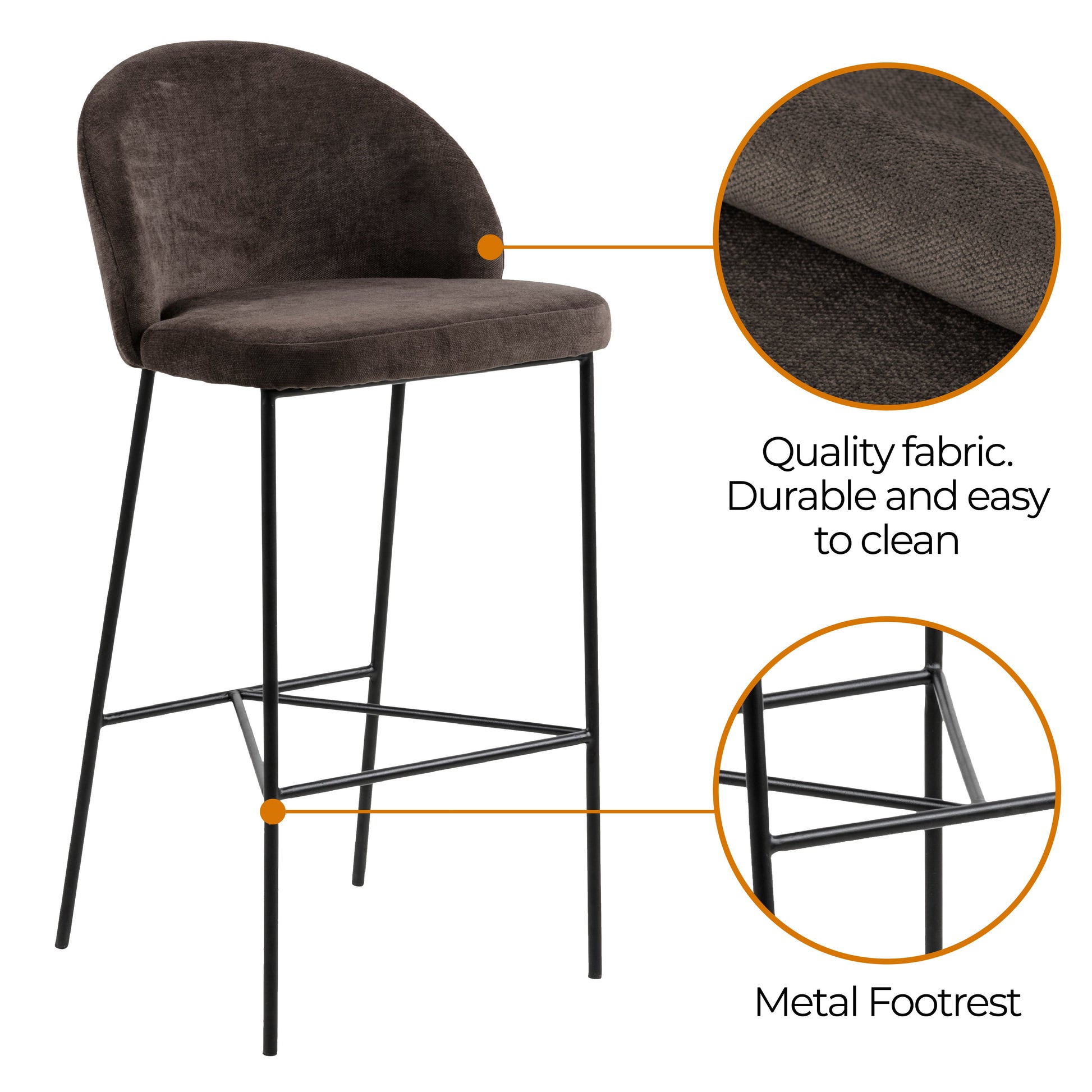 Nelson Barstool Brown Fabric Steel Black Legs