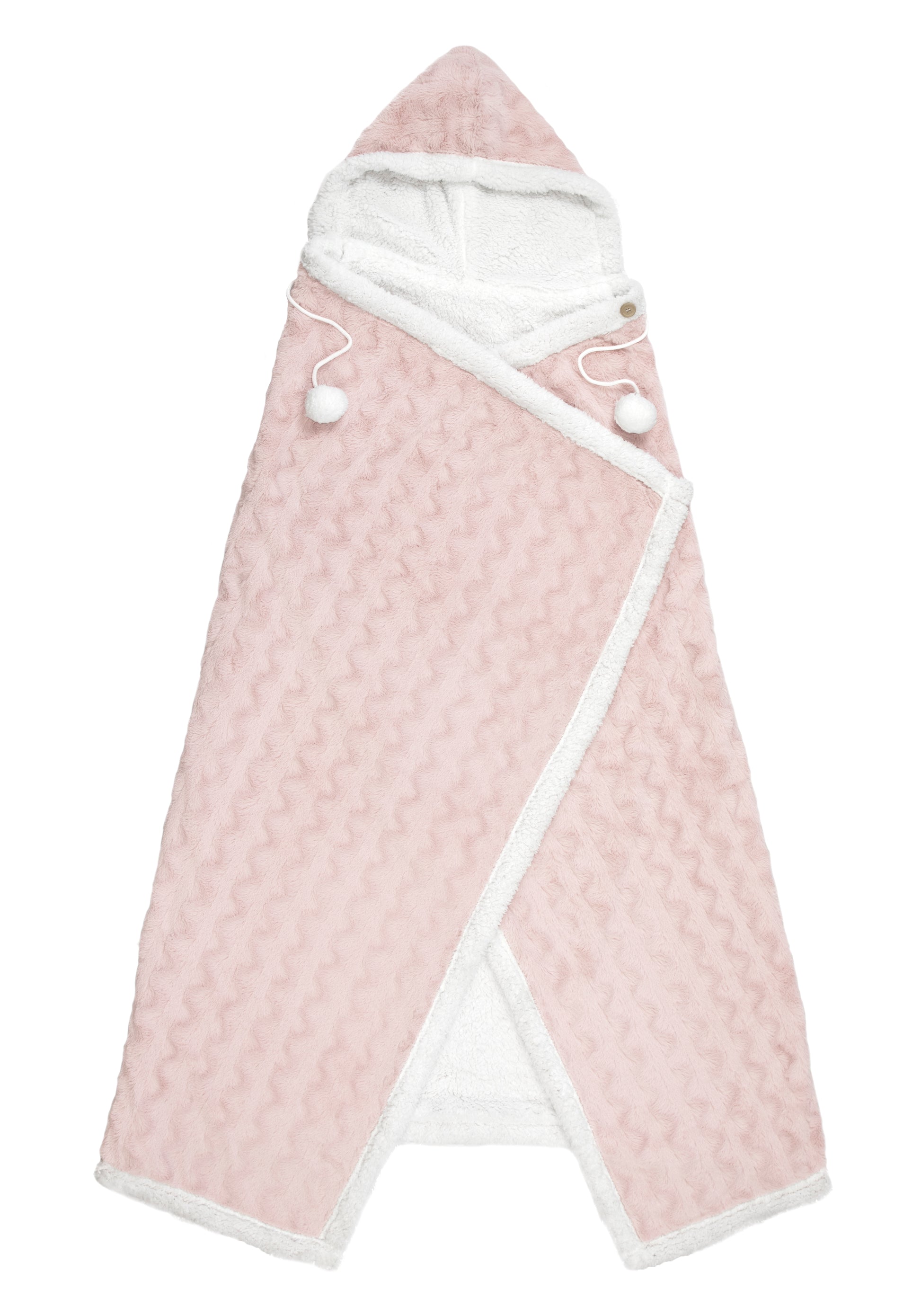 Snuggle up in our generously sized Ohio Hooded Snuggle Blanket this winter. Featuring a soft Sherpa lining, a relaxed-fit hood with button closure and pom-pom string detail. This luxurious faux fur design will add style to your time spent relaxing at home. Available in Pink colour only.
