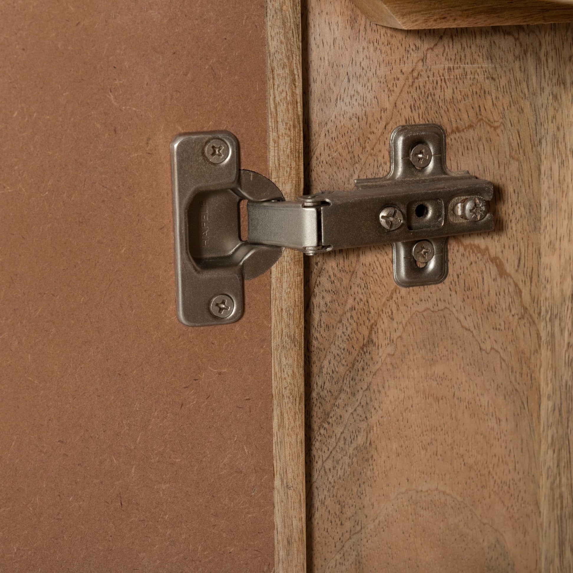 This 2-door buffet is a furniture marvel that displays visually appealing natural aesthetics. It is a versatile storage case that looks lovely in the living room and kitchen. Made of sustainably harvested mango wood, the furniture piece has gorgeous rattan weave on the door fronts. Mango wood is valued for its robustness, longevity, and resistance to mould or moisture. Adjustable hinges, magnetic latches, and solid brass metal handles add to the practical functionality of the doors that cover sizable compartments. Attractive tapered legs made of solid timber provide a sturdy base for the buffet. Designed in a contemporary style, the furniture piece brings a sense of cosiness and warmth to your living area. The natural colour makes it suitable to complement diverse interior decor styles or furniture pieces. The easy-to-assemble buffet comes with a one-year warranty.