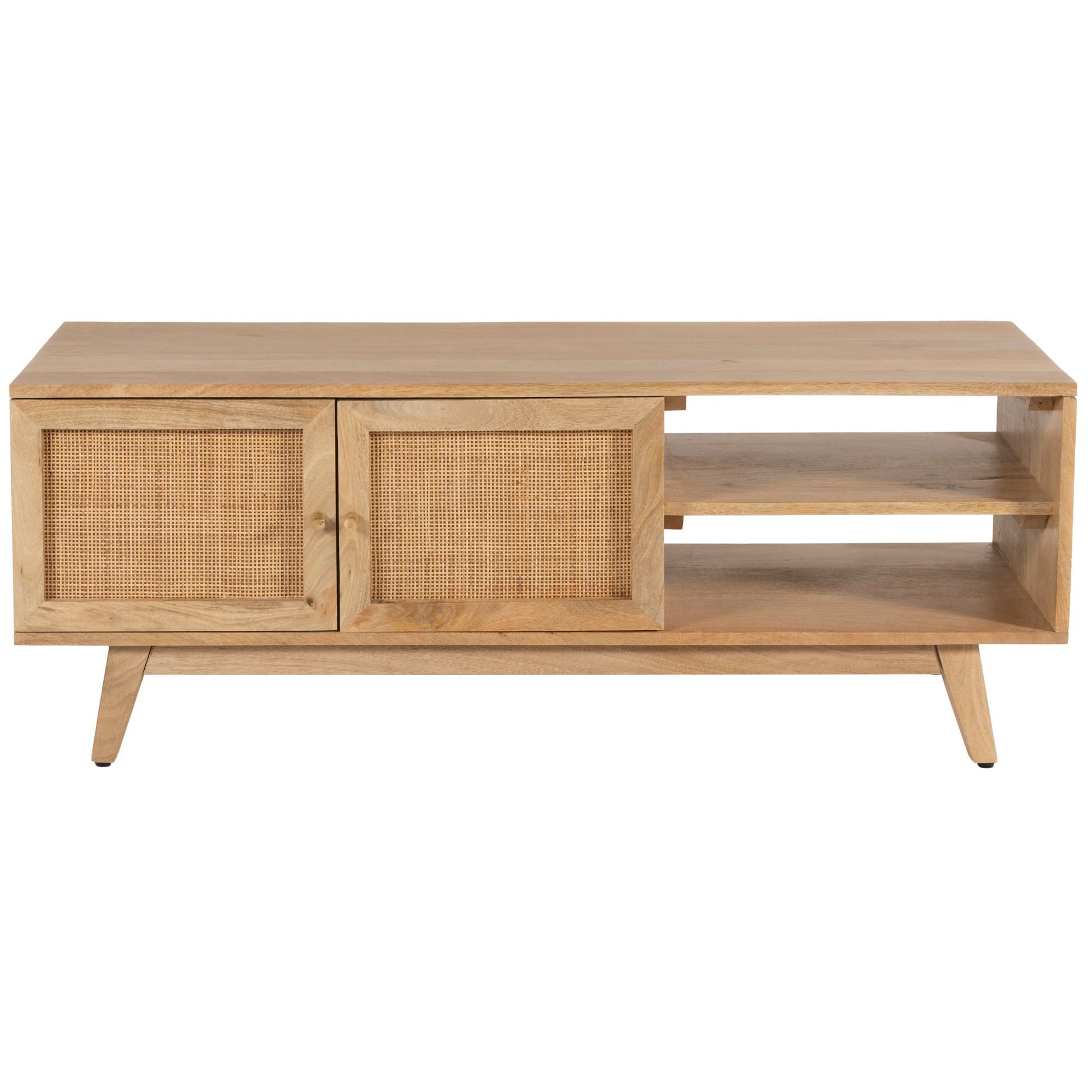 Olearia ETU Entertainment TV Unit 117cm Solid Mango Wood Rattan 2 Door Natural