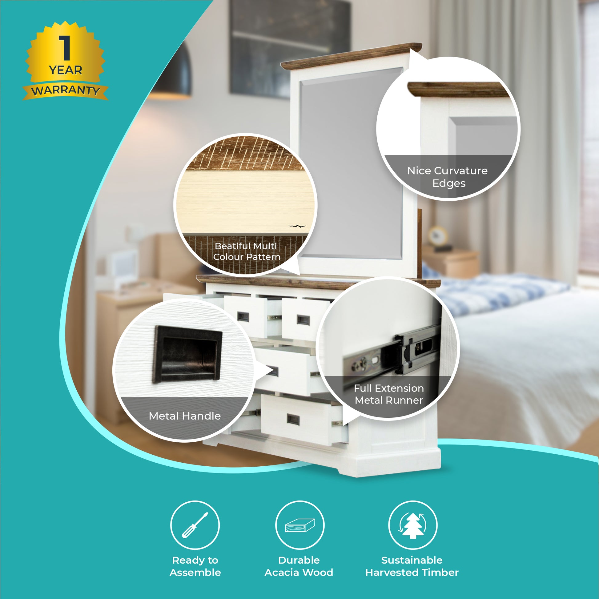 Orville Dresser Mirror 7 Chest of Drawers Tallboy Storage Cabinet - Multi Color