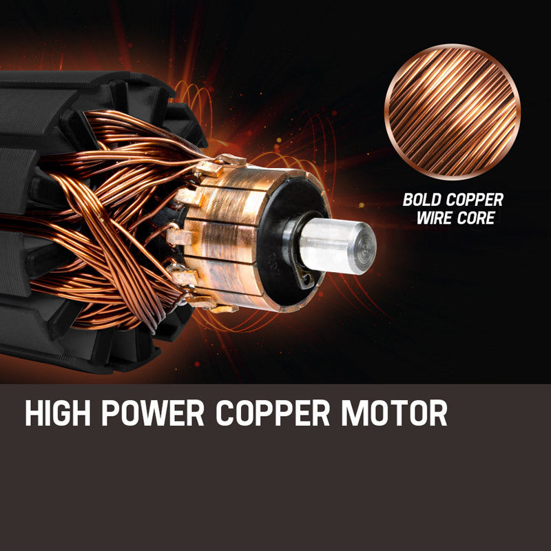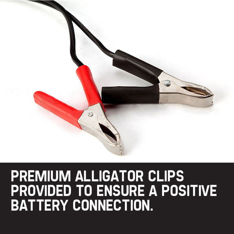 - Fused (45amp) Extra heavy-duty 2 metre power cable with heavy-duty alligator clamps for battery connection