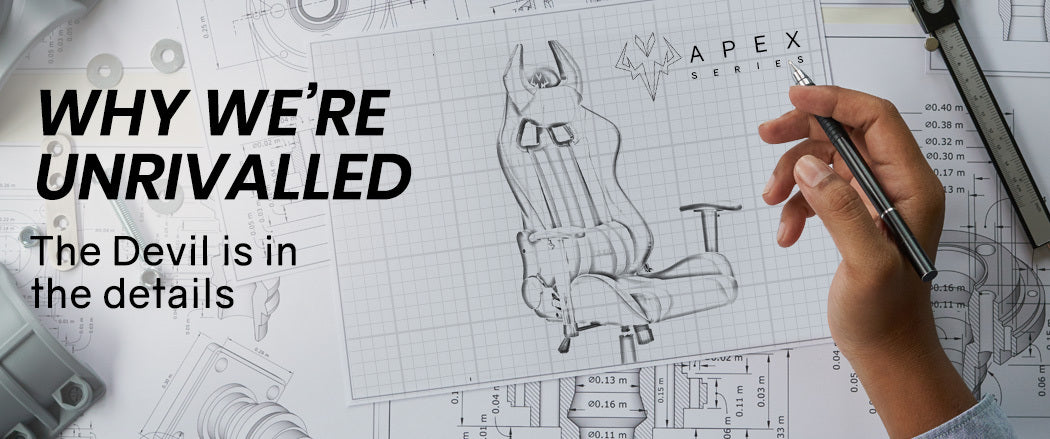 The Apex Gaming Seat is designed to relieve back discomfort for pure enjoyment and maximum domination during marathon sessions. An ergonomic design incorporates a strong contoured frame and thick premium cushioning that is wrapped in the highest-quality upholstery. The devil is in the detail with the signature horned neck cushion and a high-density lumbar cushion that is height adjustable for perfect positioning.