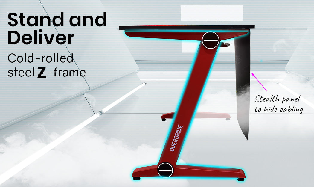 Presenting a Next Level Gaming Chair and Desk combo setup from OVERDRIVE™ Designed by gamers for gamers, it represents a commitment to cover all bases with signature designs that are loaded with features to give you the edge. Crafted according to strict quality standards, this setup is sure to reign supreme in any home or gaming cafe.