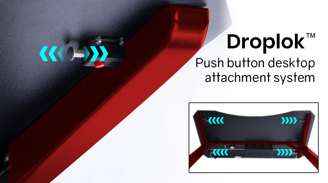 We know you\'ve got a heap of gear to hook up, and so you\'ll love the wide range of smart cable management options the DX2 series offers. There\'s a powerboard ledge for hooking up your monitors, tower and sound gear, accompanied by cable runners to keep things neat and tidy underneath and behind the desk. There are even grommets in the frame that give you the option of hiding cabling through either leg. Plus, the desktop can be attached in seconds thanks to the patented push button DropLok™ system!
