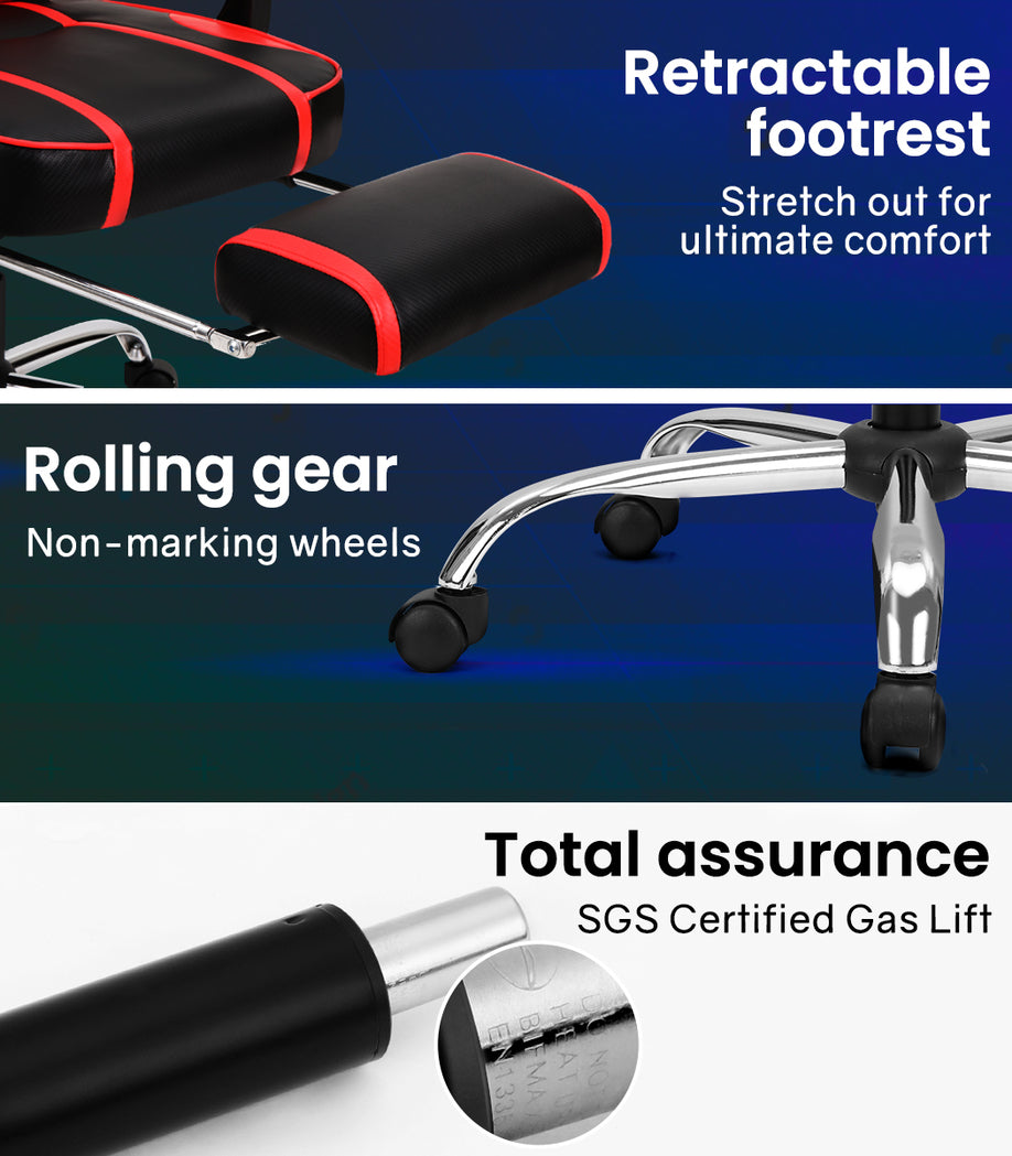 OVERDRIVE Gaming Chair Racing Computer PC Seat Office Reclining Footrest Red