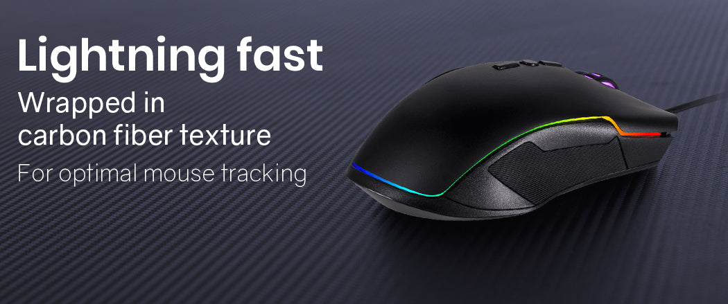 The desktop is wrapped in carbon fiber texture which not only looks the goods, but ensures the ultra-responsive mouse tracking you need to stay at the top of your game.
