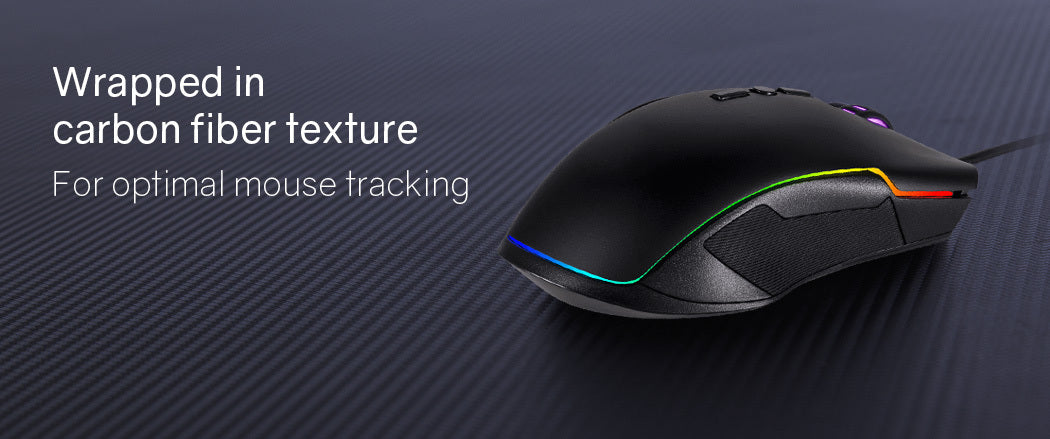 The desktop is wrapped in carbon fiber texture which not only looks the goods, but ensures the ultra-responsive mouse tracking you need to stay at the top of your game.