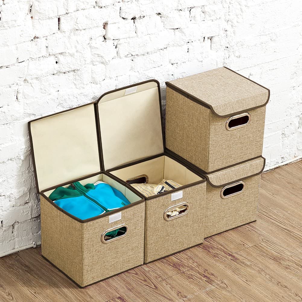 - Reinforced Construction for Lasting Use: Cardboard sides and removable bottom insert give shape to these Collapsible Storage Bins, allowing them to stand on their own while not fully filled. And the reinforced construction gives you long lasting use.