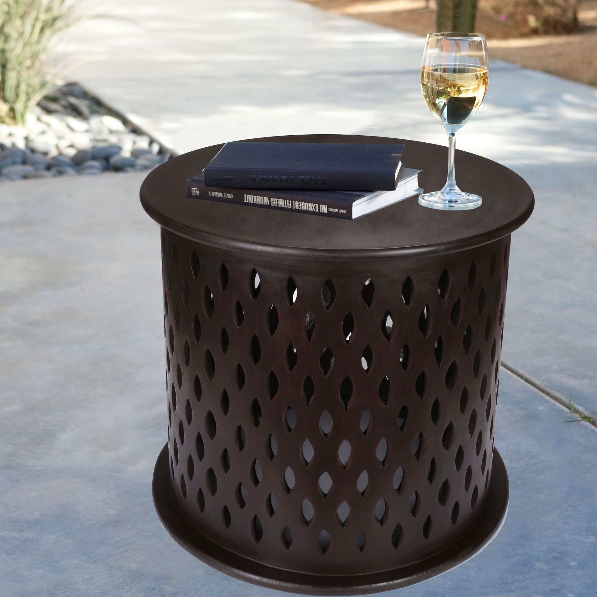 This extremely beautiful side table gives a fresh charm to your living space. With its distinct design, round shape, and burnt colour, the traditional style side table will add a new dimension to your living area. The table is designed in an exotic pattern using sustainably harvested solid mango wood. The wood ensures the table's high water resistance, long durability, and beautiful appearance. It will become the perfect companion for any kind of lounge or sofa, while becoming a beautiful spot to keep lampshades, vases, photo frames, etc.The fully assembled side table comes with a one-year warranty.