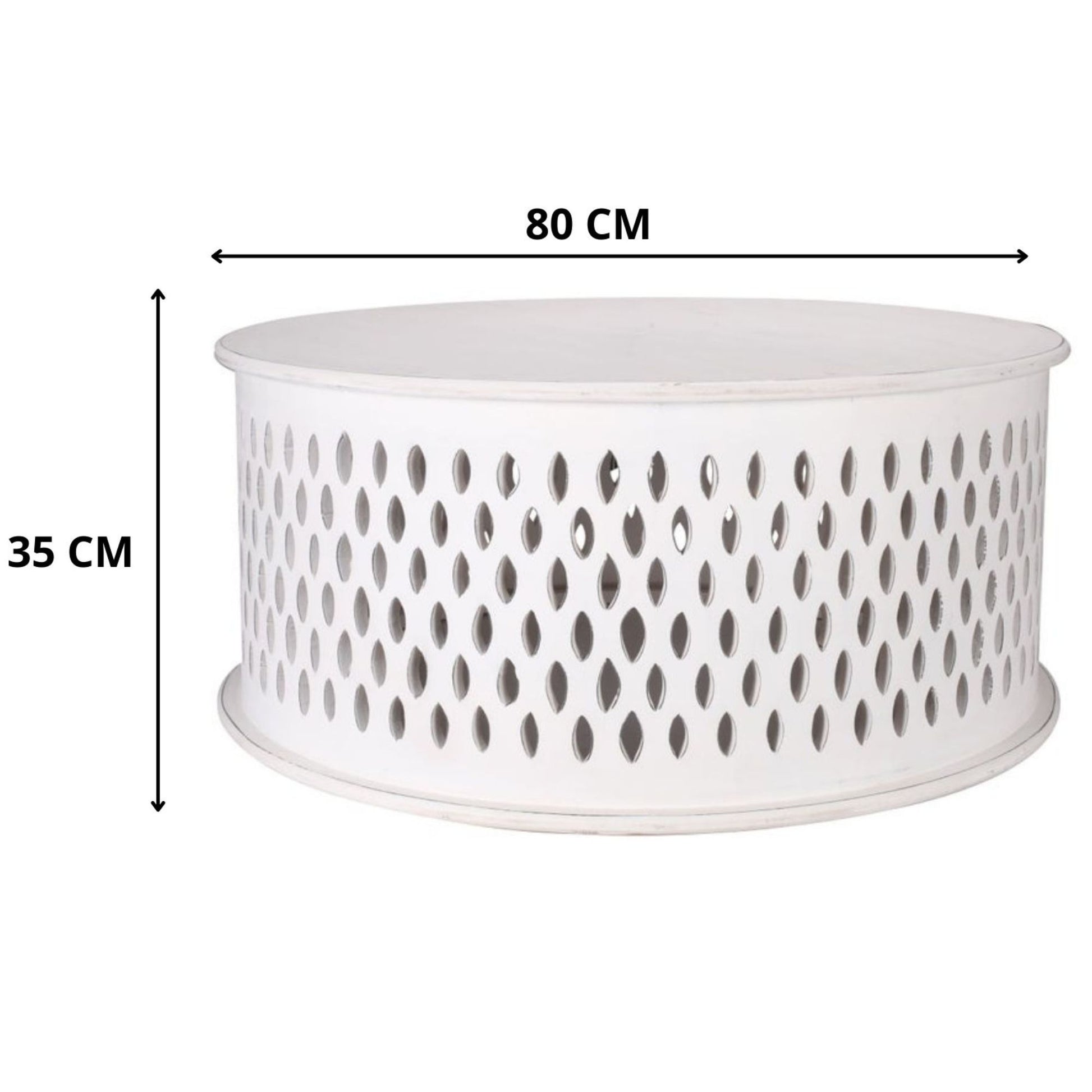 This immensely beautiful centre table enhances the feel of a living room. With its distinct design, round shape, and white colour, the traditional style coffee table will add a new dimension to your living area. The table is designed in an exotic pattern using sustainably harvested solid mango wood. The wood ensures the table's high water resistance, long durability, and beautiful appearance. It will become the perfect companion for any kind of lounge or sofa, while becoming a stopover for tea, coffee, magazines, and devices. The fully assembled coffee table comes with a one-year warranty.