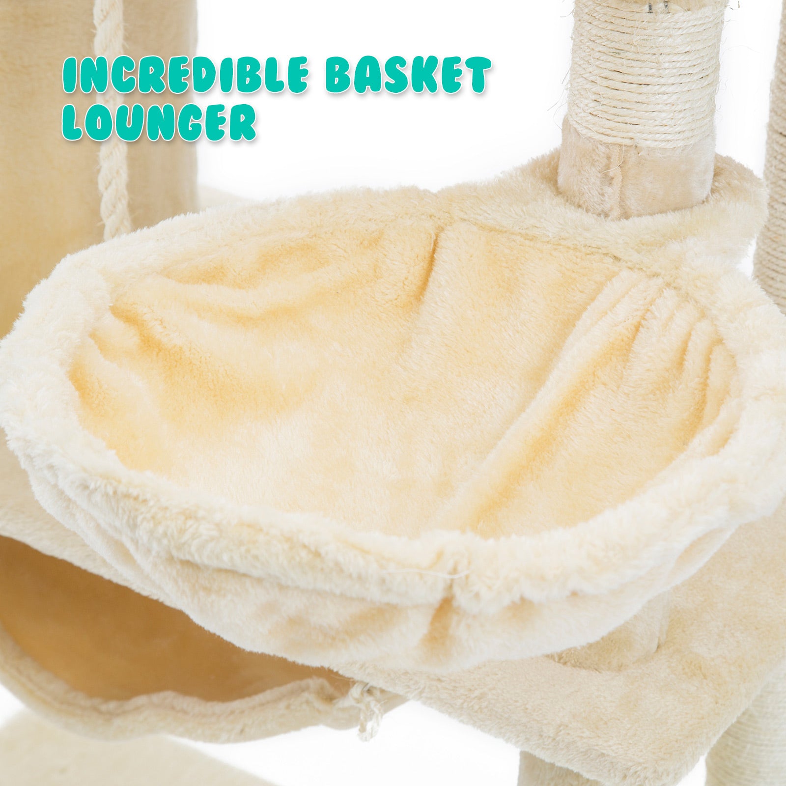 - Plush carpet platforms to give your cat comfortable resting/playing