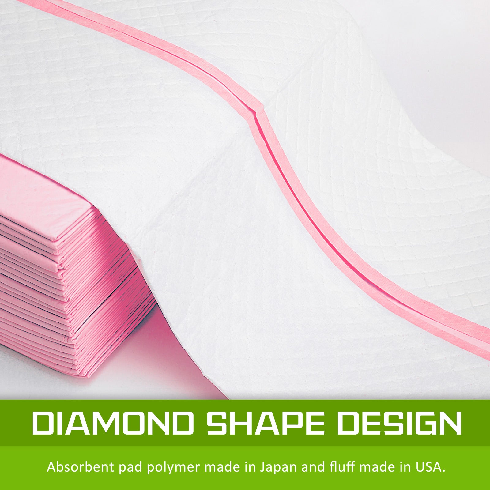 - Absorbent pad polymer made in Japan and fluff made in USA
