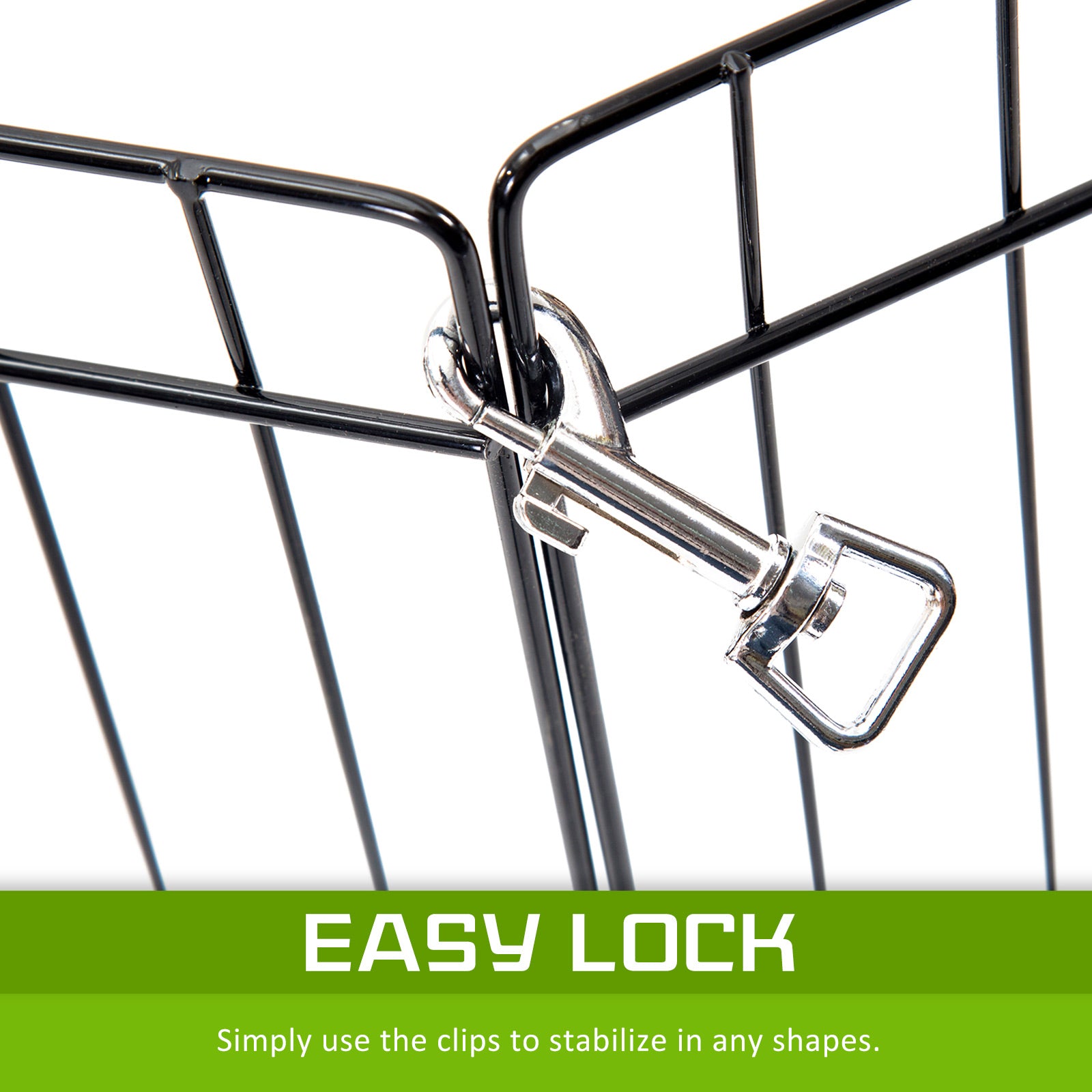 It features as 8 panels for multi-configuration which allows you to turn your playpen into different shapes. Made of durable steel frames construction with black powder coat finish provides Long Lasting Protection and weather resistance. The access door with bolt latches you can be sure that your pet doesn't have the opportunity to run away and the round edges ensure pet safety.