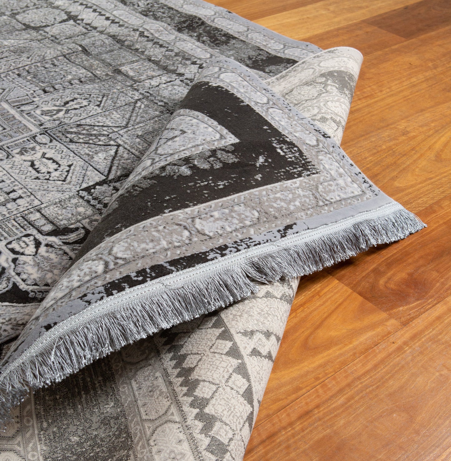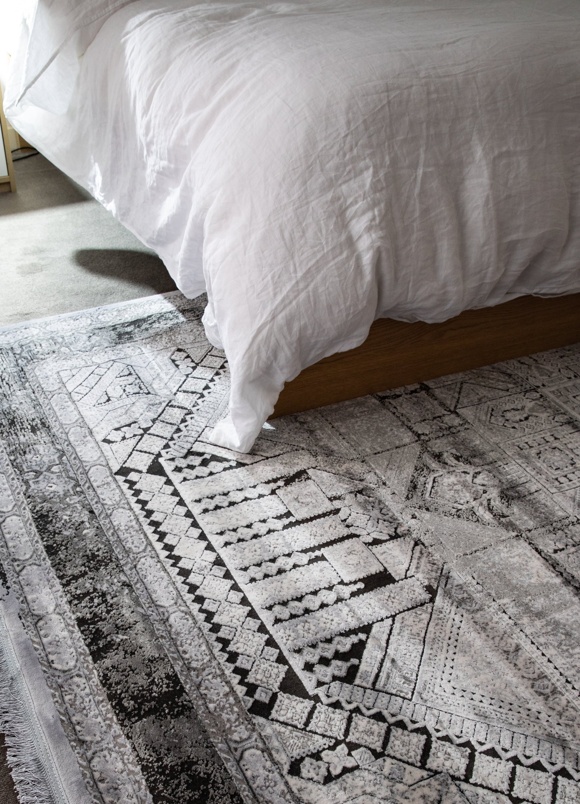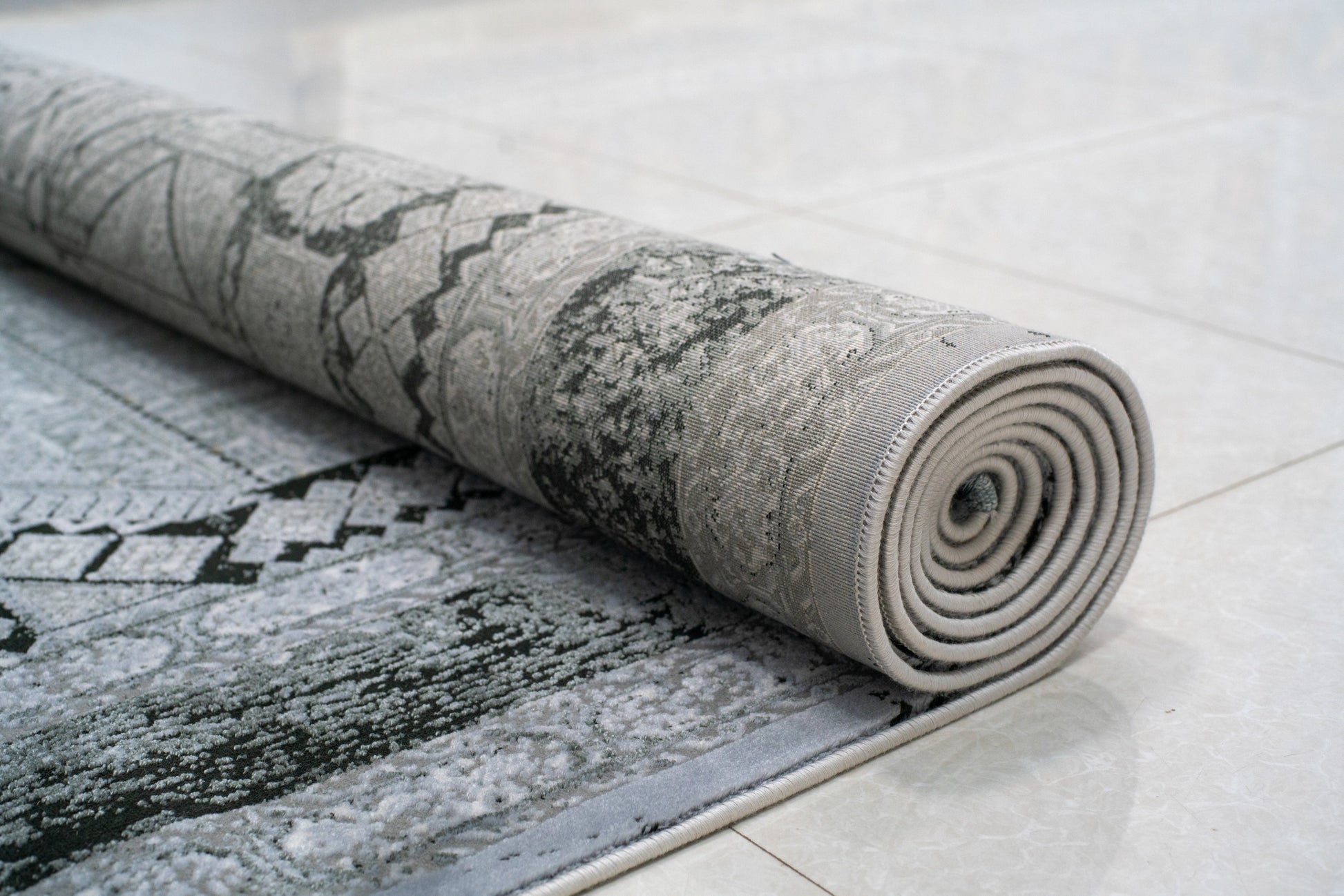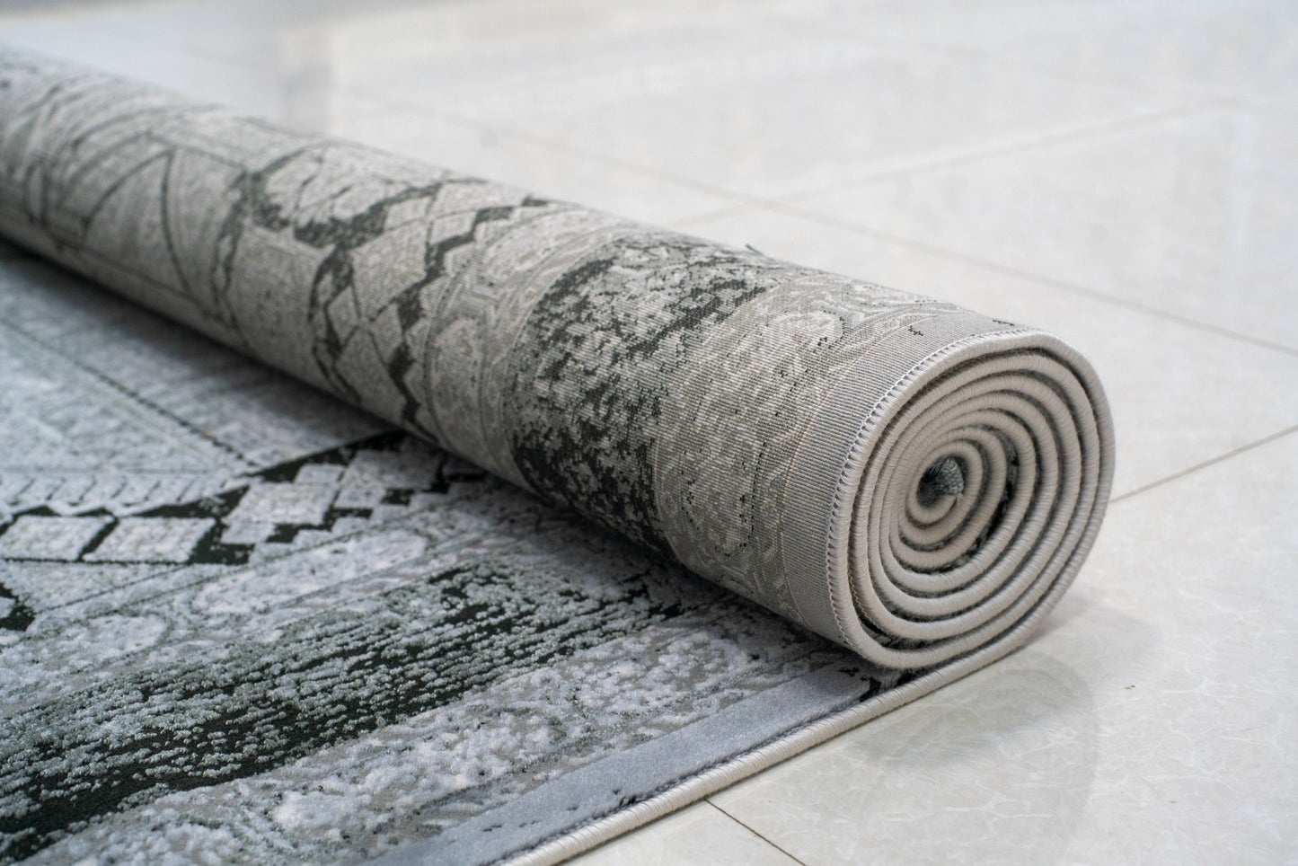 A vintage avant-garde rug exhibiting creative geometric designs. The grayscale theme of this design evokes intriguing depth and dimension – an exotic yet stunning piece for your home space. Athena creates a three-dimensional effect on the floor, to add soulful life and a sensory relief effect to your room alongside its aesthetic beauty.