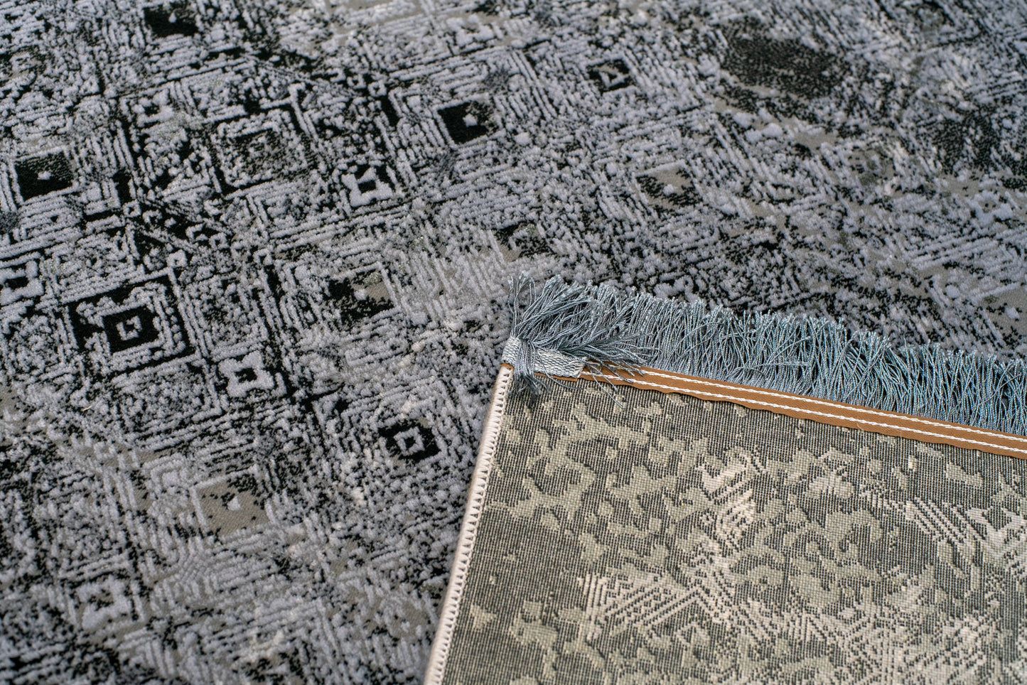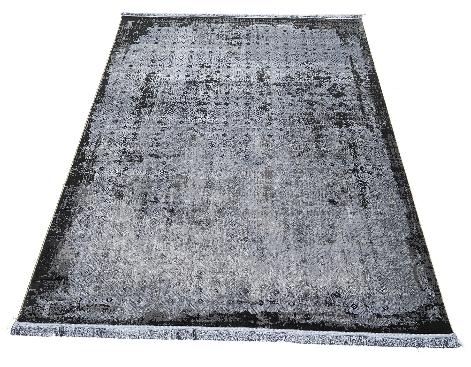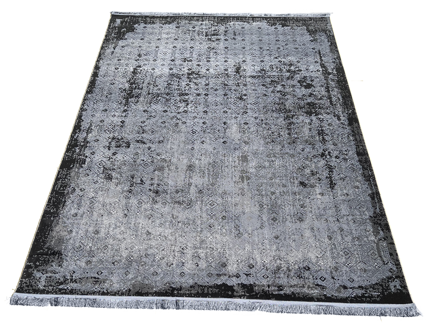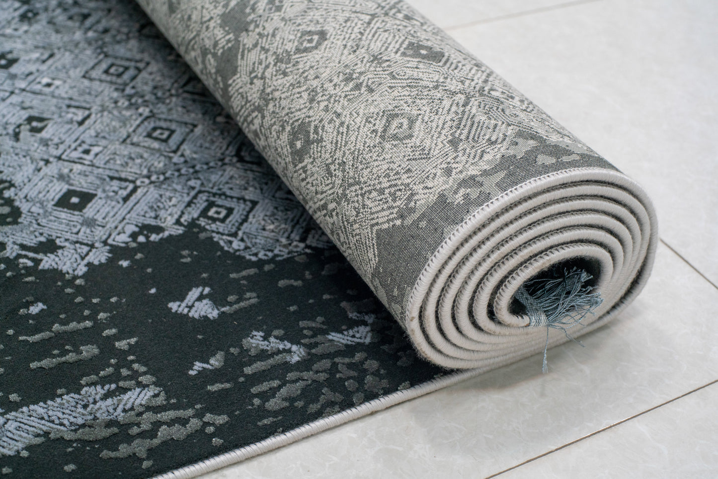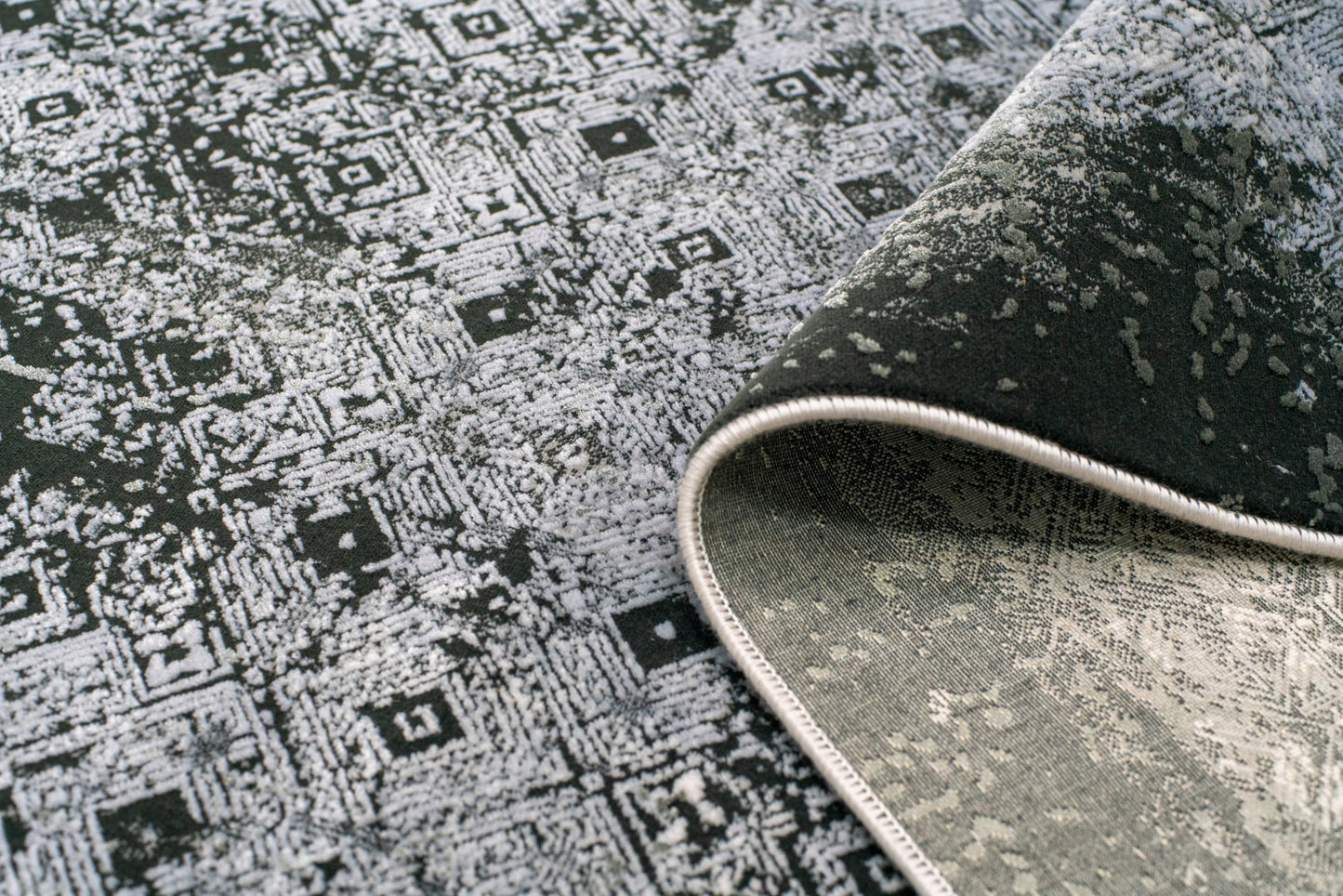 An elegant, simplistic grayscale design featuring a modernistic diamond pattern embellishing abstract shade strokes. This rug is an ideal complement to a contemporary home space. Despite being machine-made, Danica retains an authentic hand-made look.