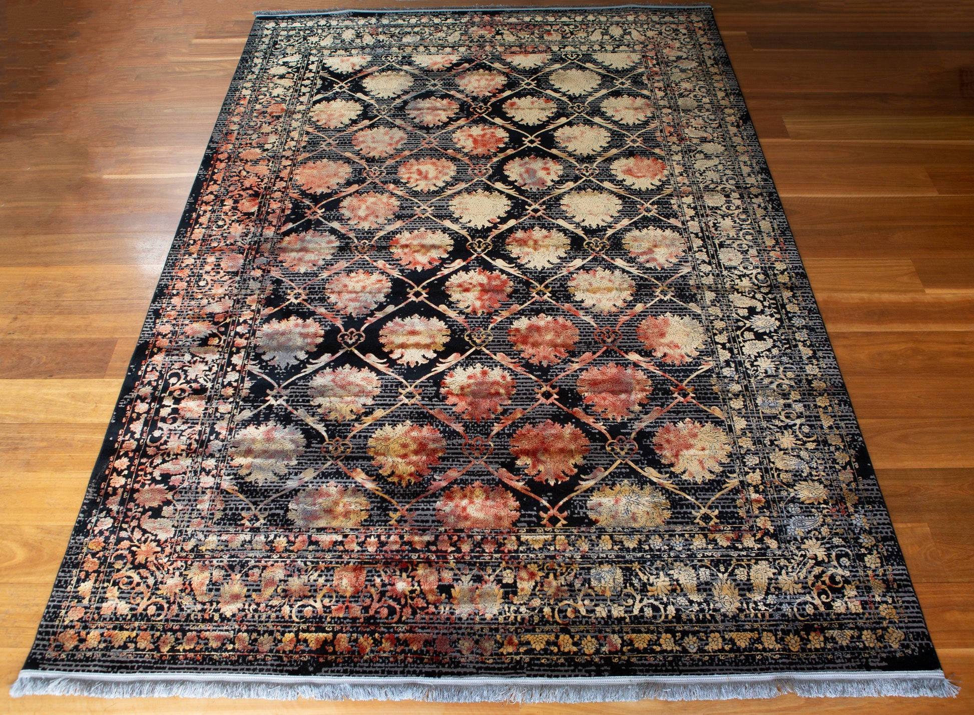 A true masterpiece brimming with fierce personality, this traditional design rug is a royal yet modern addition to a treasured home space. While its diamond embroidered frames and contained floral gems present a soothing symmetry, asymmetry becomes evident in the colours, where a spirited red is scattered across the identical patterning, twisting a perfect but plain design into something rather exquisite.