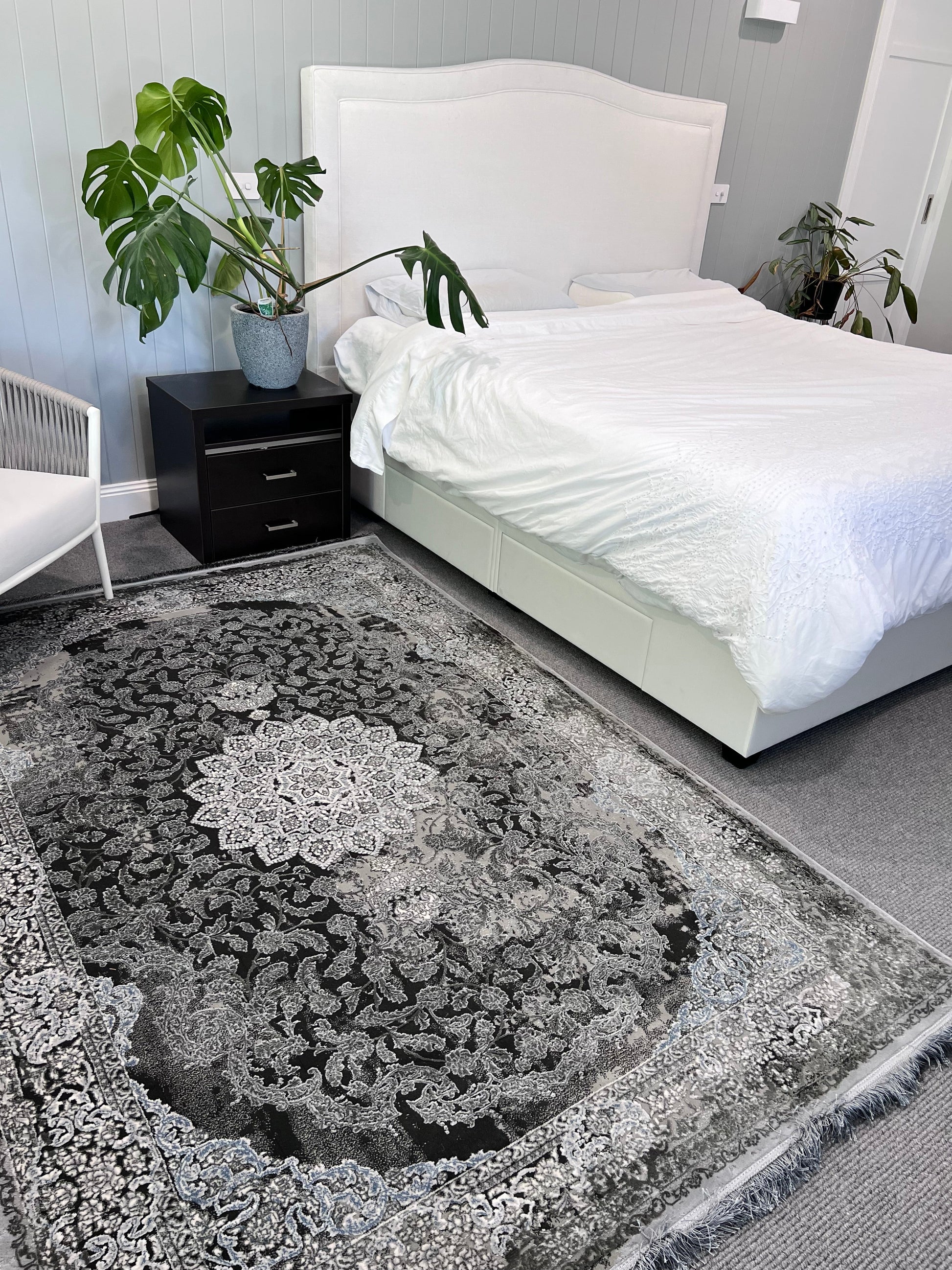 An unusual but welcome blend of abstract grayscale and traditional Persian floral designs, this rug shows off a fancy fusion between a modern and cultural style, surpassing regular expectations and bringing characteristic elements of two eras together. Magnolia creates a three-dimensional effect on the floor, to add soulful life and a sensory relief effect to your room alongside its aesthetic beauty.
