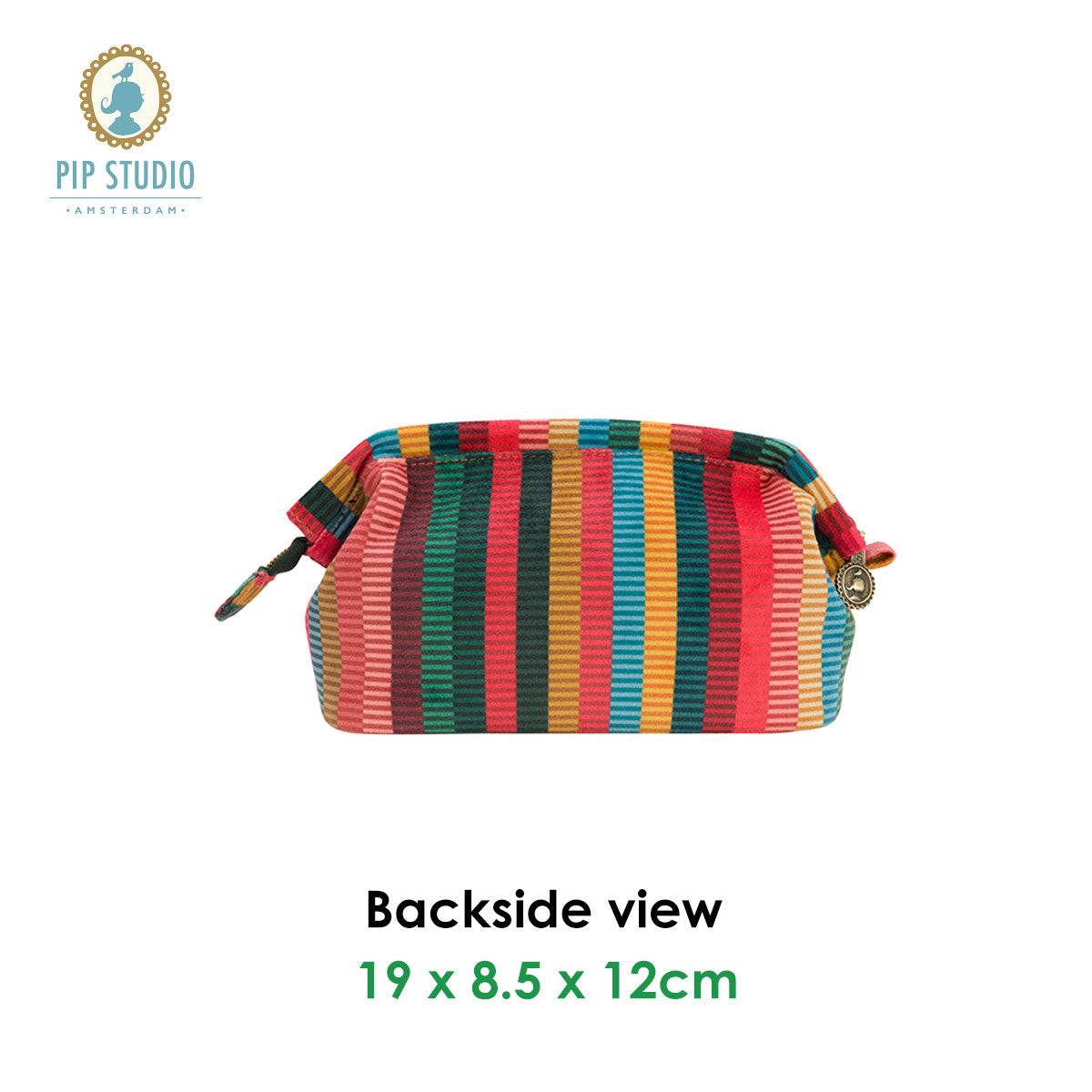 This Velvet Jacquard Stripe Small Cosmetic Purse by PIP Studio is perfect for daily use in your bathroom or to take with you on a trip. The cosmetic bag is decorated with the Jacquard stripe design, which consists of bright red, pink, green, yellow, blue, coral, and gold colours which are connected trough horizontal and vertical stripes. This cosmetic bag matches perfectly with our Homewear items of this season. The velvet look creates an extra touch of elegance. Complete your total look for a stunning result.