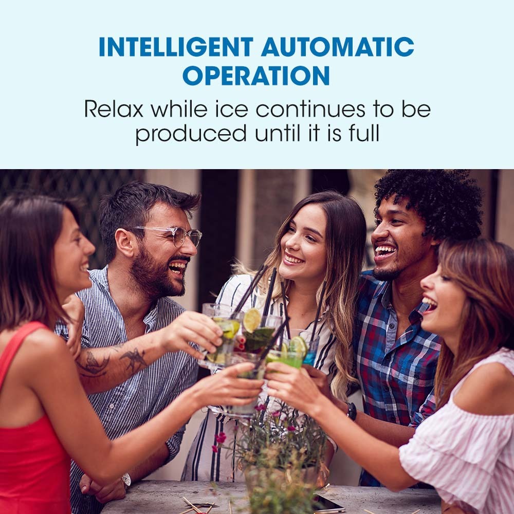 Simply kick back and enjoy the festivities as Polycool silently does its thing, as you’re safe in the knowledge that advanced sensor technology pauses production when the container is full. There’s a practical inspection window and an intuitive control panel which provides full-container and low-water indication. You can also select from two ice bullet sizes, so that you and your guests can have the best drinking experience.