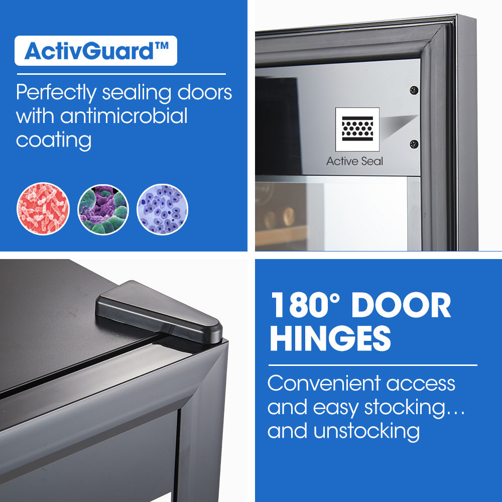 The PolyCool Noir range features ActivGuard™ technology which combines superior sealing doors with an anti-microbial coating to inhibit bacterial growth. The digital touch display makes it easy to adjust the temperature. It also has flash memory to remember your temperature setting should you decide to move your chiller or you temporarily lose power.