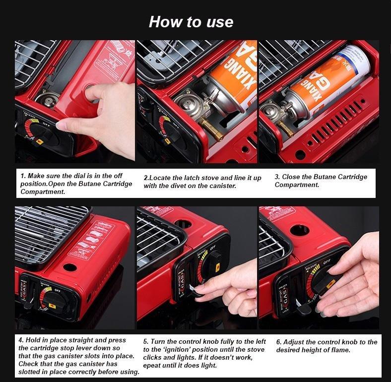 Portable Gas Stove Burner Butane BBQ Camping Gas Cooker With Non Stick Plate Black with Fish Pan and Lid