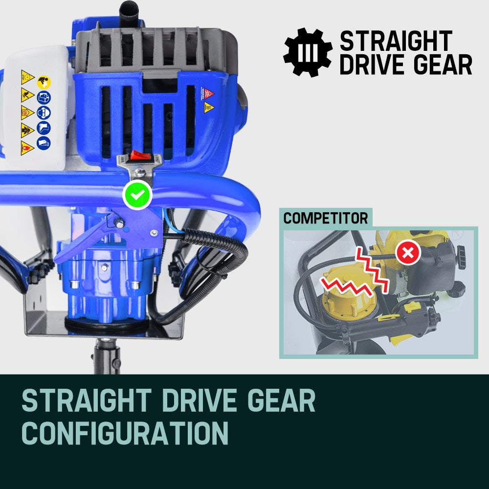 Utilising this unique combination along with a full size commercial straight drive, large capacity fuel tank and high tensile gear set, durability and reliability are second to none. Time to throw away your old shovel and become the master of holes.