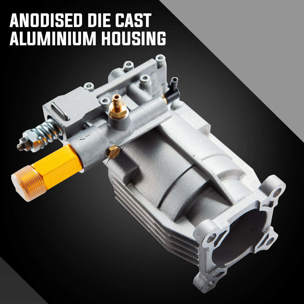 With a forged manifold and an anodised die cast housing, the Jet-USA High Pressure Water Pump has definitely proven its dependability in the field. This premium unit has a detergent inlet and a thermal relief valve and is pre-filled with oil and suits a wide range of pressure washers.