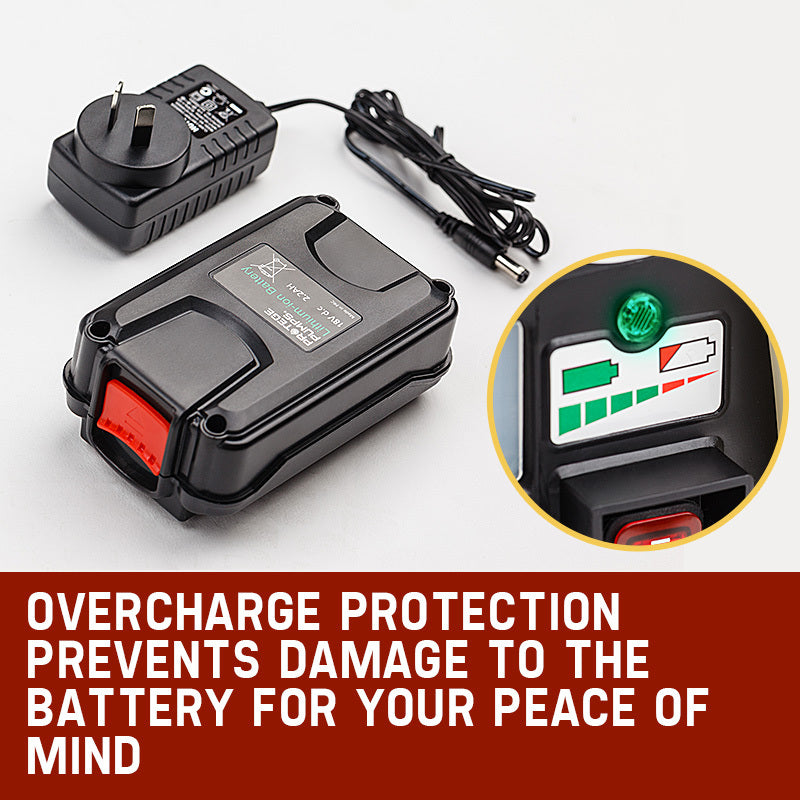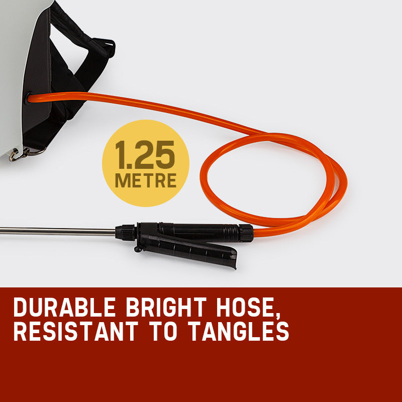 The 18V Sanyo Lithium-Ion battery sits head and shoulders above the competition, allowing for up to ninety minutes of continuous operation. That means you can spray up to two hundred litres on a single charge. Or you could spray a large house or small property for a whole year off one charge! The compact battery is concealed in a splash proof compartment and has an LED power indicator so that you'll never start a job on an empty battery.