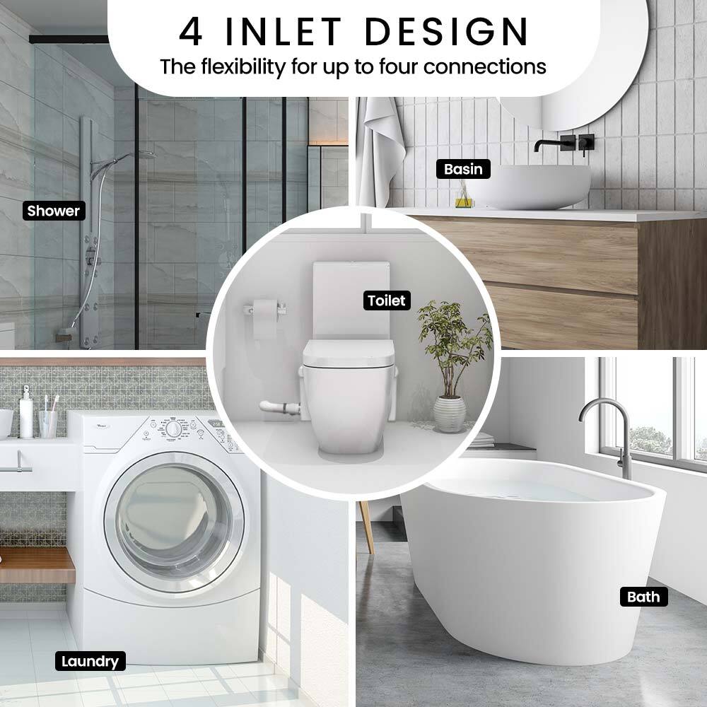 The heavy-duty Protege Washlink 4 Commercial is perfect for public or commercial environments. It is designed for p-trap toilets and can connect with up to 4 sanitary fixtures, such as a basin, shower, bath, bidet or washing machine.