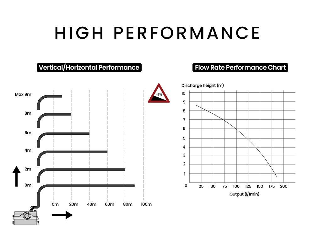 - Vertical Pumping (Max): 9m
