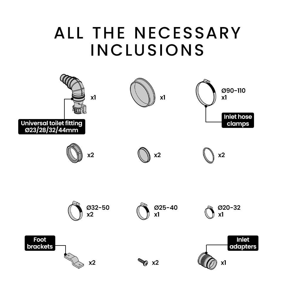 - 2 x ⌀32-50mm Inlet hose clamps