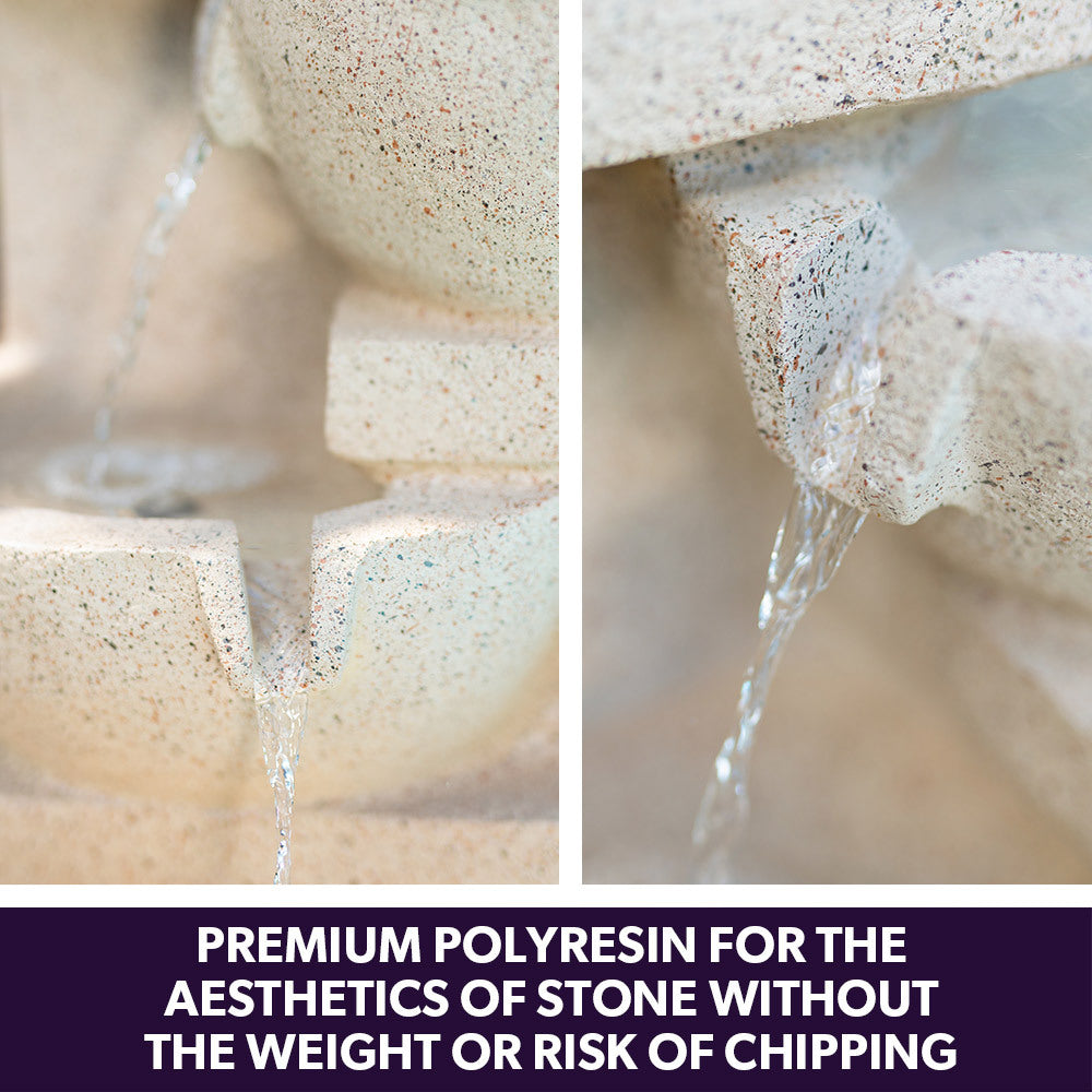 PROTEGE Solar Fountain Water Feature Outdoor 4 Bowl with LED Lights - Sand Colour