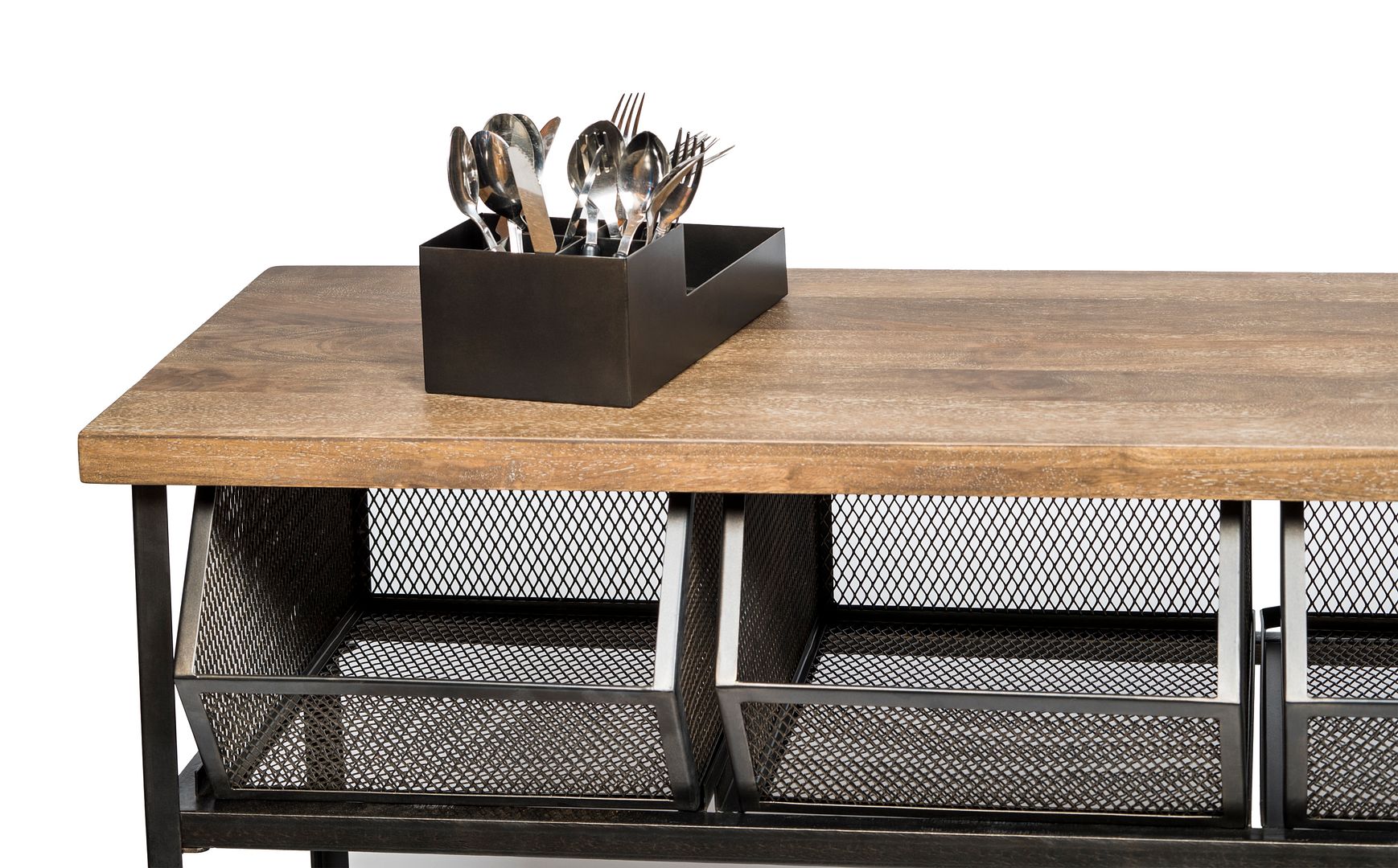 - Material Details: Frame & Basket: Iron | Shelves: Wood