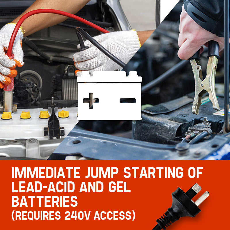The 750P Series II packs a serious punch. Simply plug into a 240v socket, and it will deliver a massive 750A amps and up to 50 Amps continuous charging, making it ideal for battery maintenance, workshops and the ultimate jump start for any vehicle. Revive flat batteries in seconds.