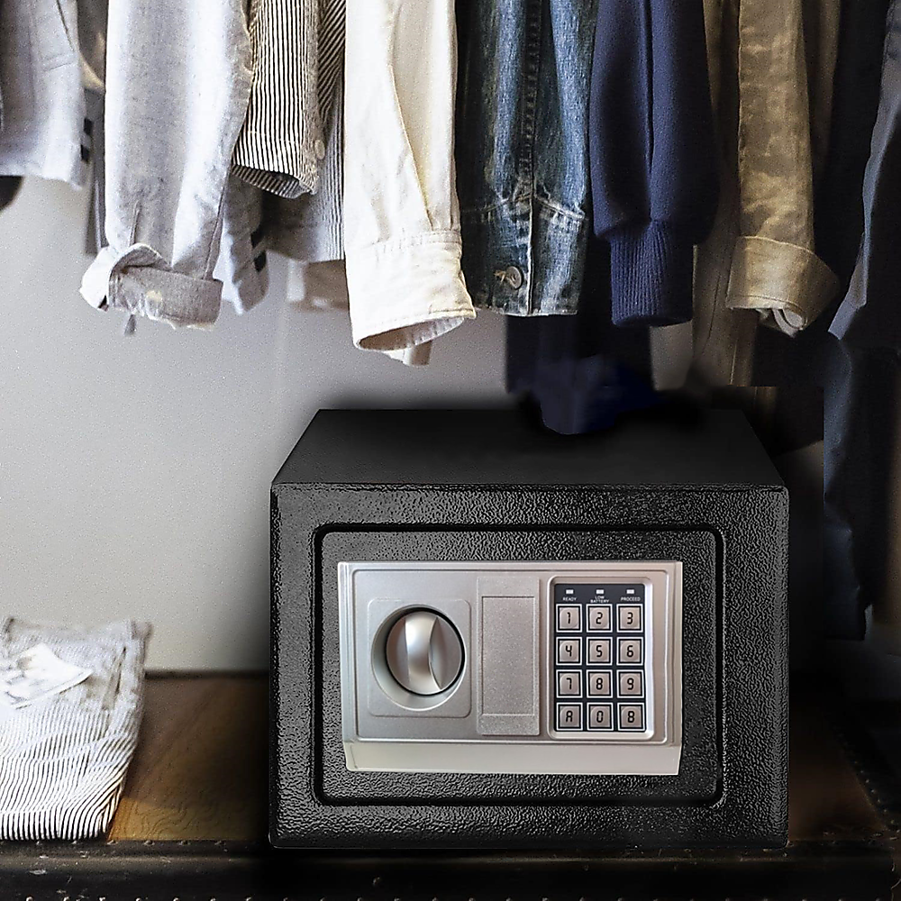 Stay on the safe side with the Randy & travis Digital Safe, a robust and highly secure unit designed to safeguard your valuable possessions. This reliable safe features a sturdy power-coated steel frame, reinforced with thick doors and sides, along with a dependable twin-bolt locking mechanism. Its tamper-proof concealed hinges provide an additional layer of protection. Gain access to the safe through a two-way system, utilizing a digital keypad (with some models featuring an LCD display) or an emergency key, ensuring you always have a means to open it.