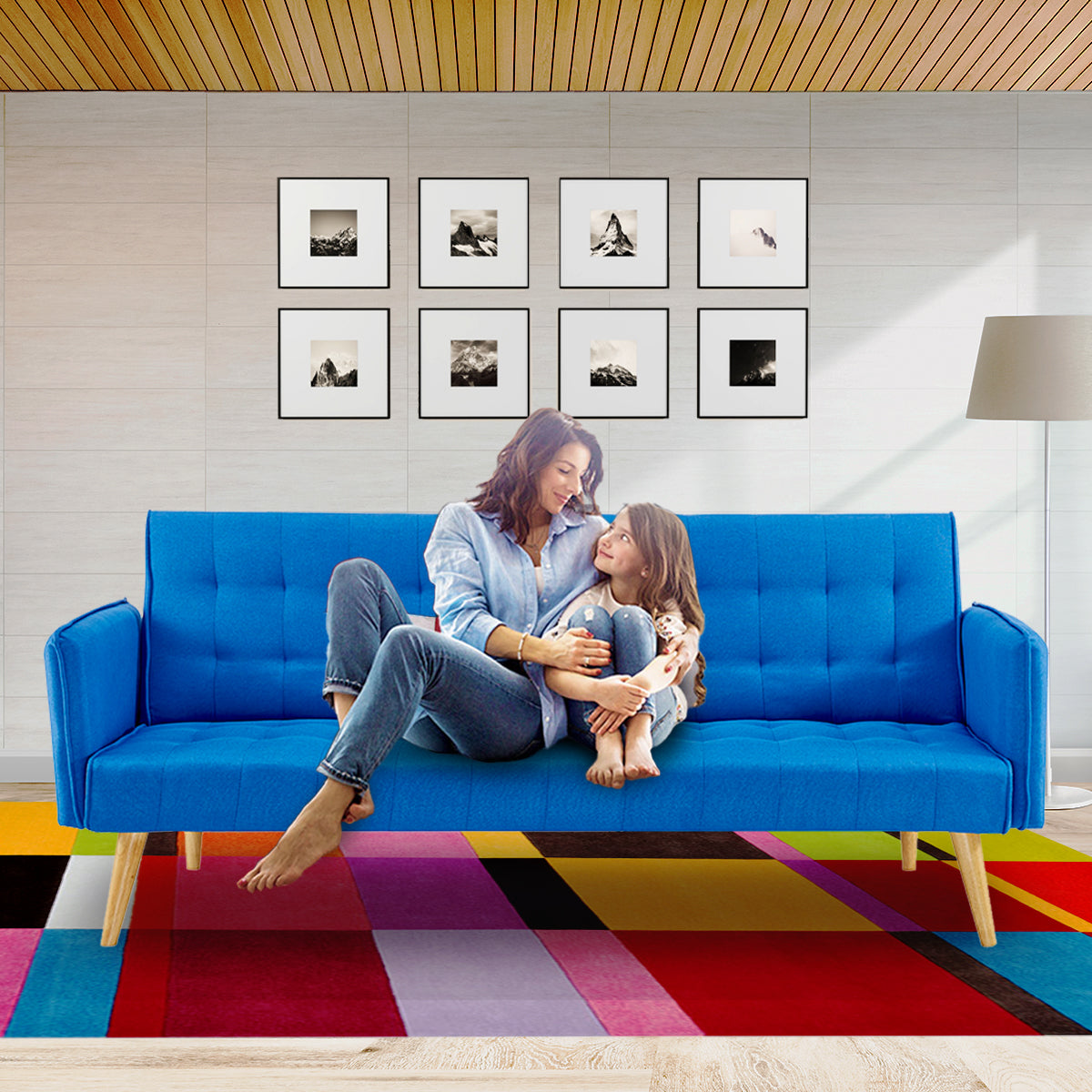 Sarantino 3 Seater Modular Linen Fabric Sofa Bed Couch Armrest - Blue