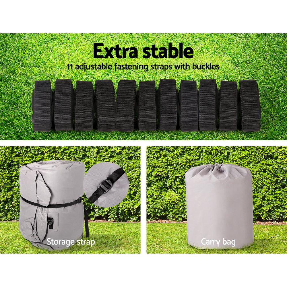 Tying down the Cover to the trailer is easy with the supplied adjustable fastening straps and heavy-duty loops. Not least, the Cover can be easily stored away with the supplied carry bag that comes with a handy carry strap.