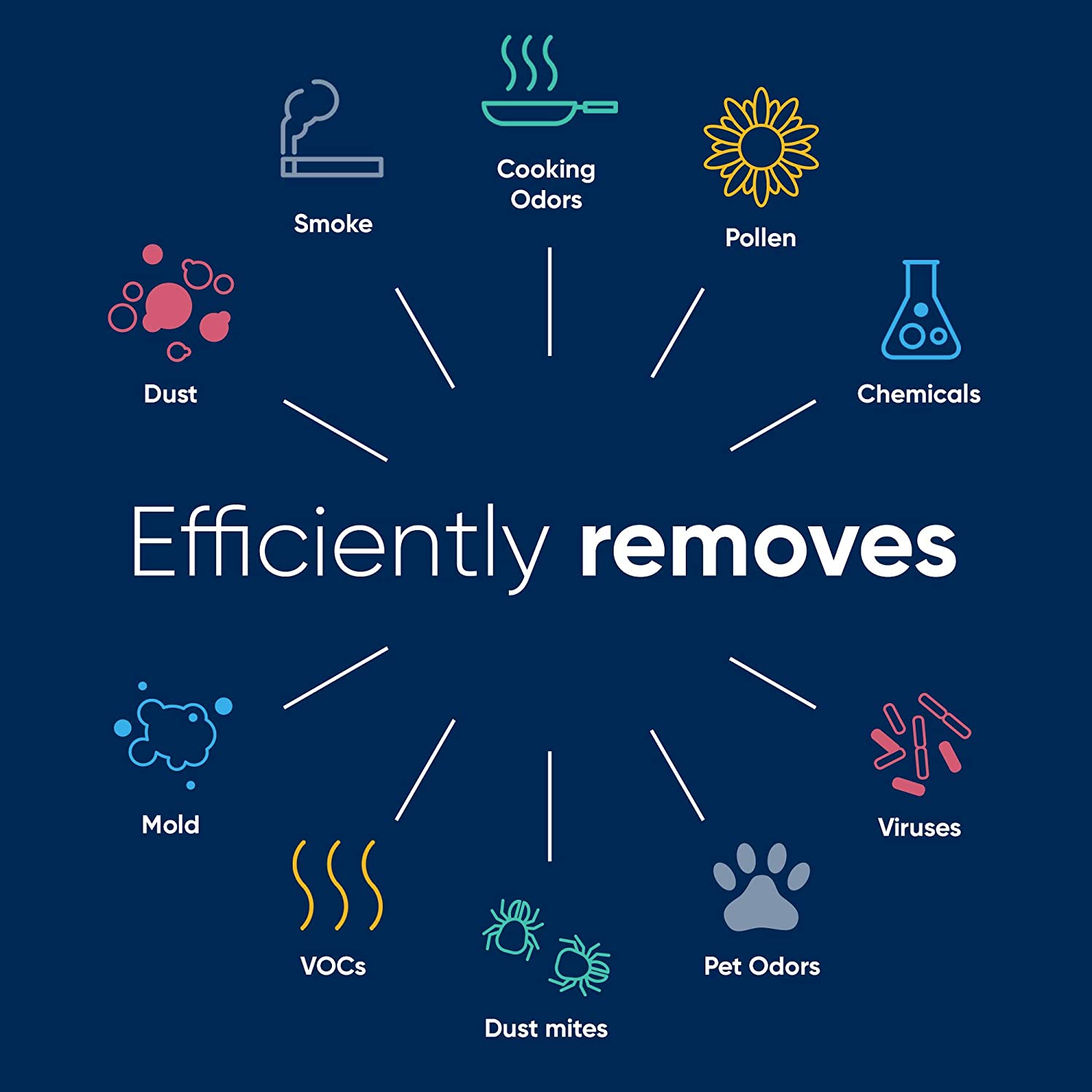 The flituer captures up to 99.9% of airborne particles, dust, pollen, smoke, odours and pet dander, True HEPA Filter & Active Carbon Filter with a clean air delivery rate (CADR) of 240m³/h.