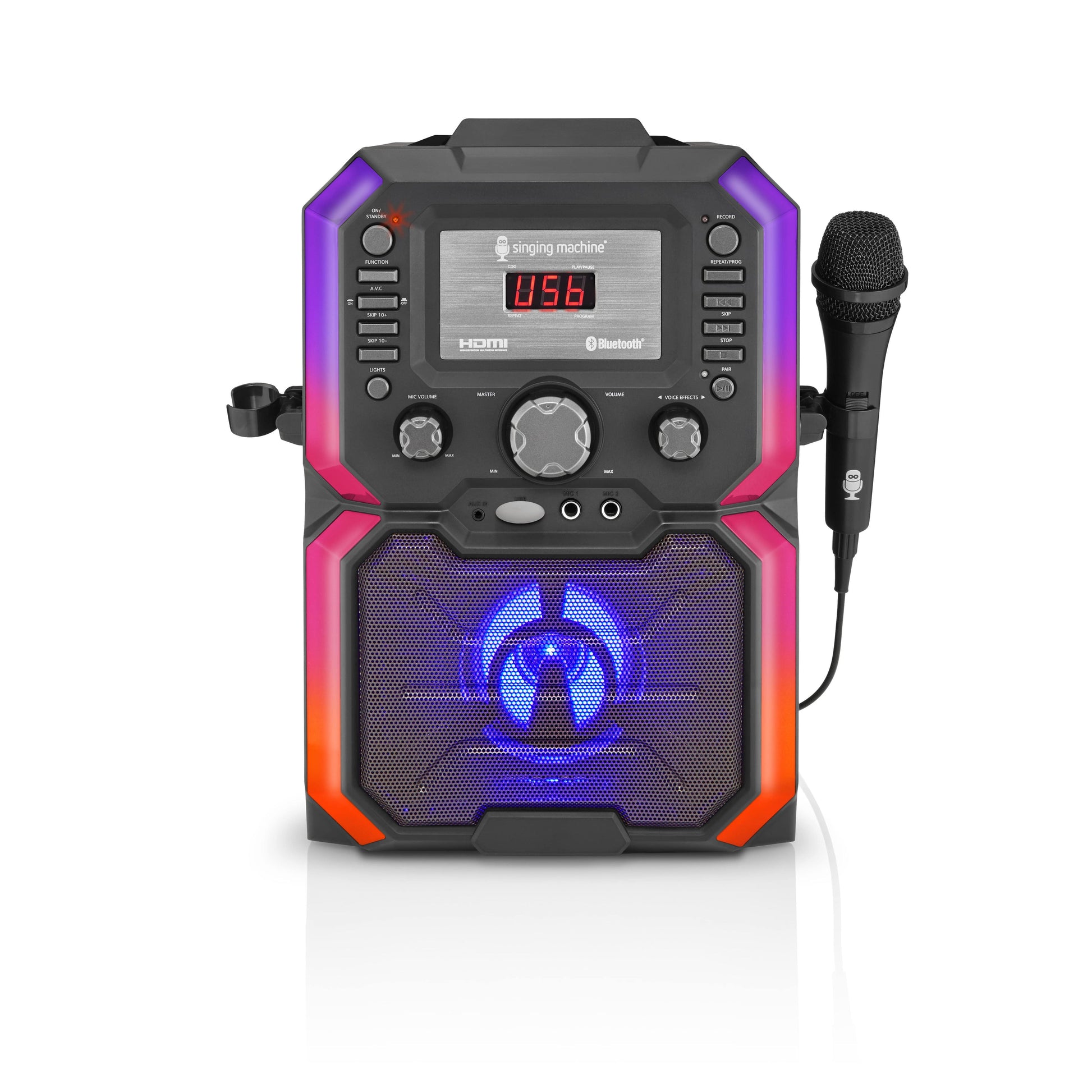 The Singing Machine Sing Cast K Box is a first of its kind to feature video casting technology to project HD karaoke vidoes from the SMC Karaoke App. Cast to your TV and share the fun with the two microphone jacks for duets )one microphone included). Audio content can also be played via your Bluetooth compatible devices. Hit the lead vocal-off button to remove vocals from your favourite songs and take over the show. Built with over 40 multi-coloured LED Lights that synchronize to the music plus speakers in a custom designed cabinet for a crisp and clear sound, you are party-ready a a moments notice!