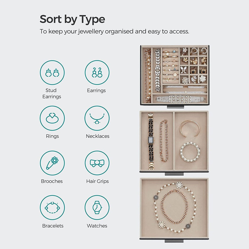 SONGMICS Jewelry Box 3-Layer with 2 Drawers Graphite Black JBC239BK