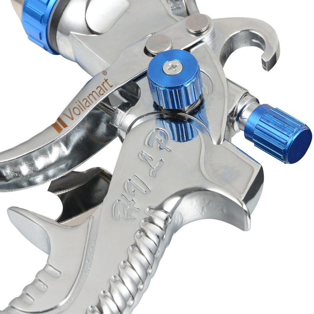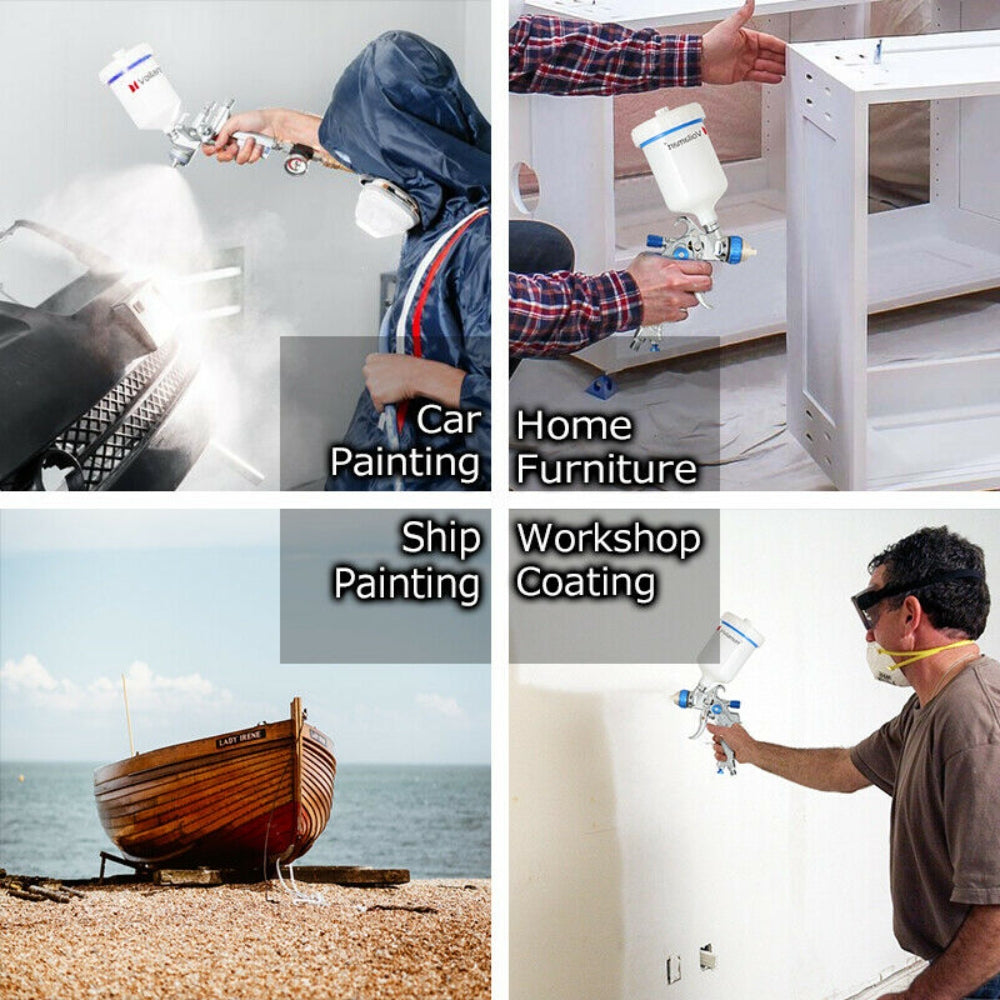 - It supplies low pressure through the air cap which makes the spraying softer, easily controlled and less overspray in high transfer efficiency.