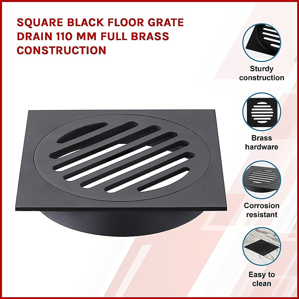 Square Black Floor Grate Drain 110 mm Full Brass Construction